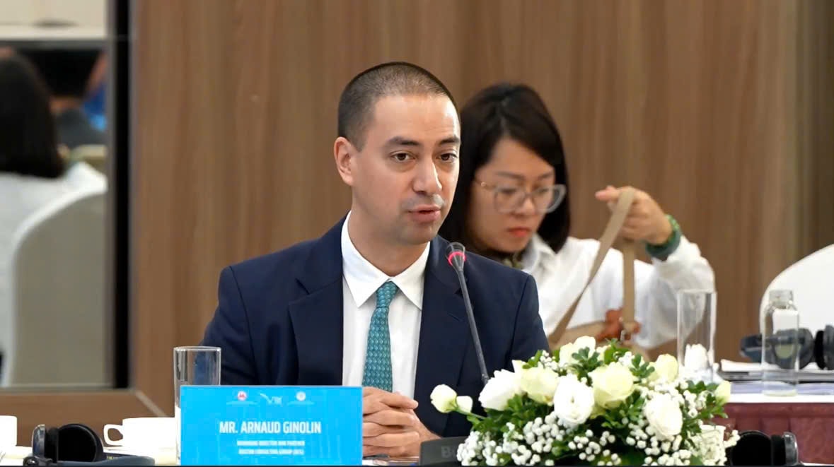 Góc nhìn chiến lược từ khu vực tư nhân được đại diện Boston Consulting Group (BCG), ông Arnauld Ginolin chia sẻ: Doanh nghiệp đang tích cực ứng dụng AI trong nhiều lĩnh vực, từ kỹ thuật, viễn thông đến chăm sóc sức khỏe. Tuy nhiên, BCG cũng nghiên cứu sâu về nhu cầu nguồn nhân lực AI, hiện được xem là "tài nguyên quý hiếm" mà cả doanh nghiệp lẫn chính phủ cần đầu tư mạnh mẽ hơn.