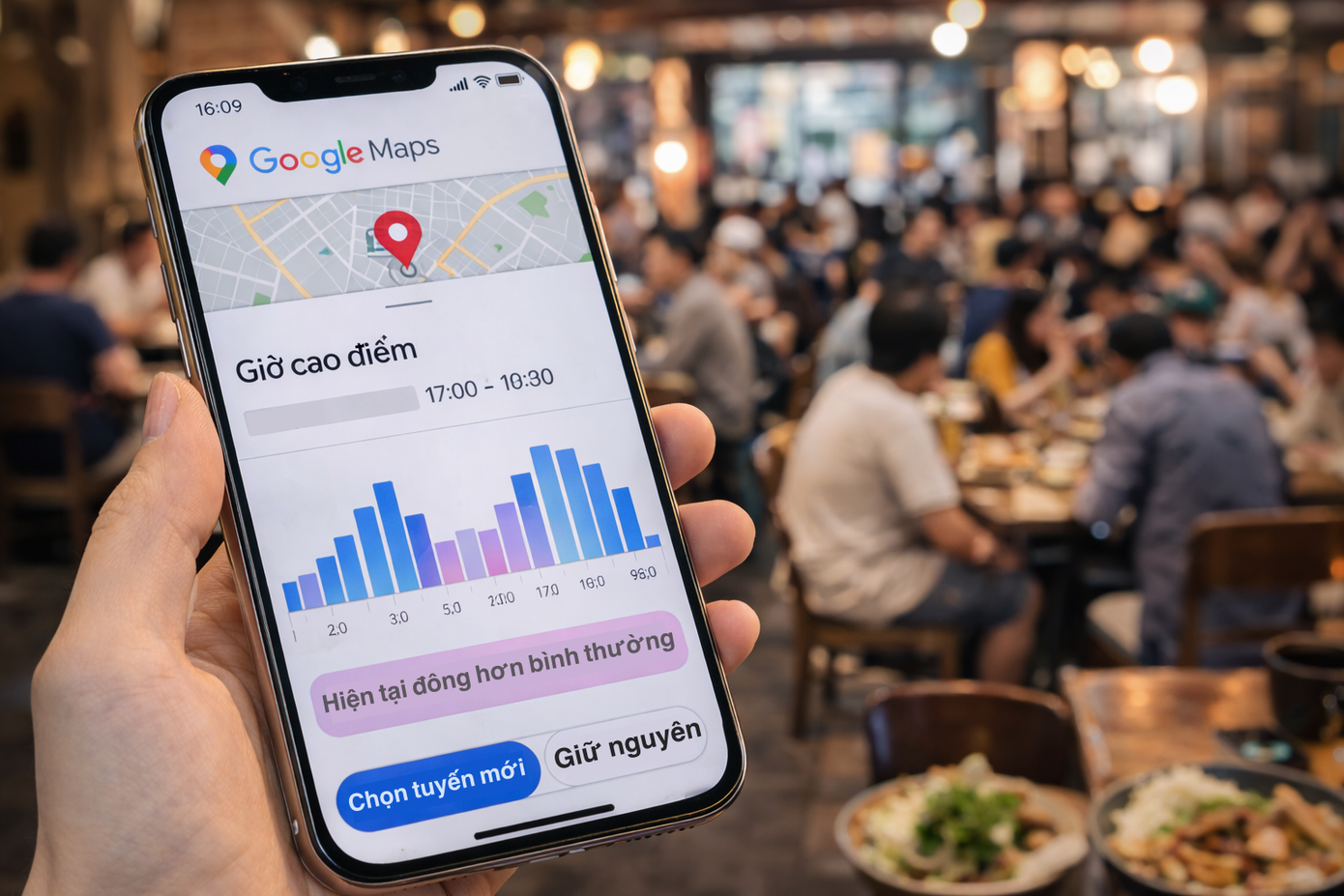 Ví dụ, nếu một quán ăn thường đông nhất vào khoảng 19 giờ, hệ thống sẽ ghi nhận đây là “giờ cao điểm”. Khi số lượng người tại quán vượt mức trung bình của khung giờ này, Google Maps có thể hiển thị thông báo như “đông hơn bình thường”. Ngược lại, nếu ít người hơn so với dữ liệu lịch sử, ứng dụng sẽ cho thấy quán đang vắng.