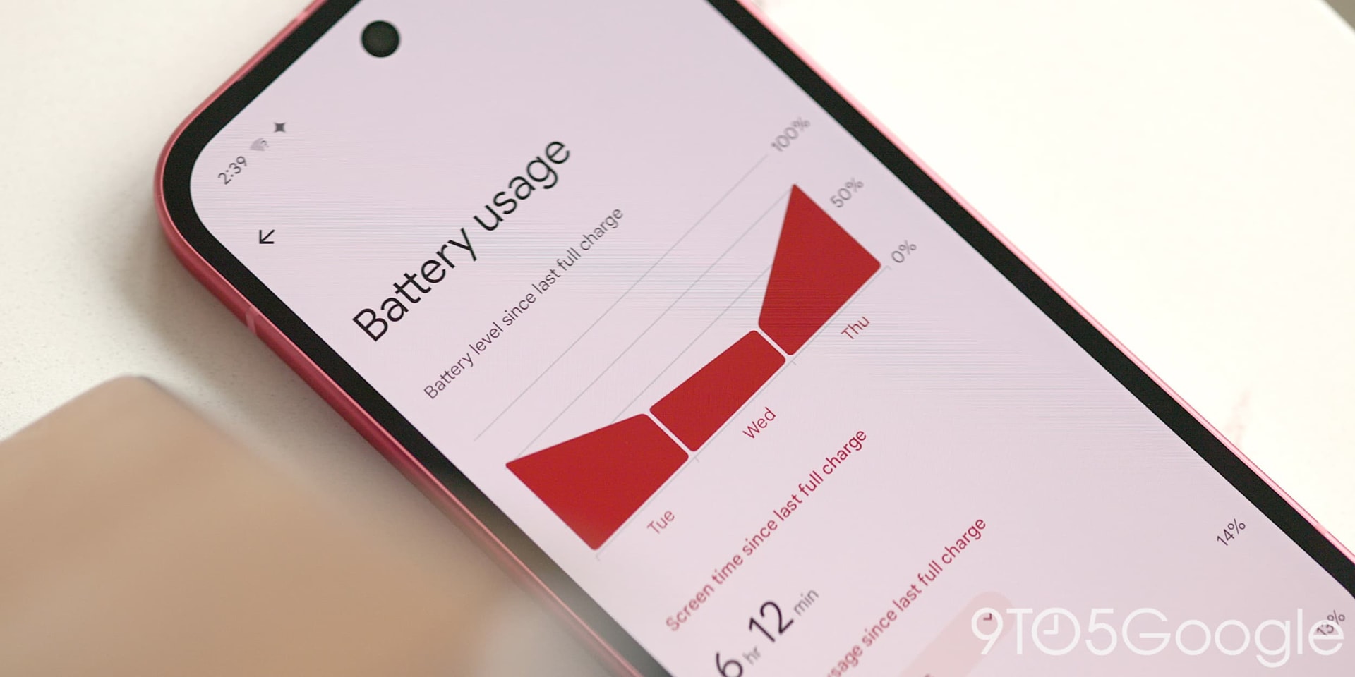 Giao diện theo dõi mức sử dụng pin trên Google Pixel 9a.