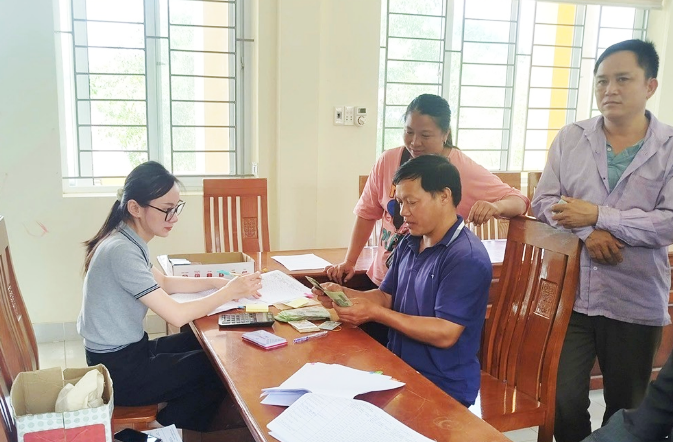Người dân xã Cô Ba nhận tiền dịch vụ môi trường rừng.