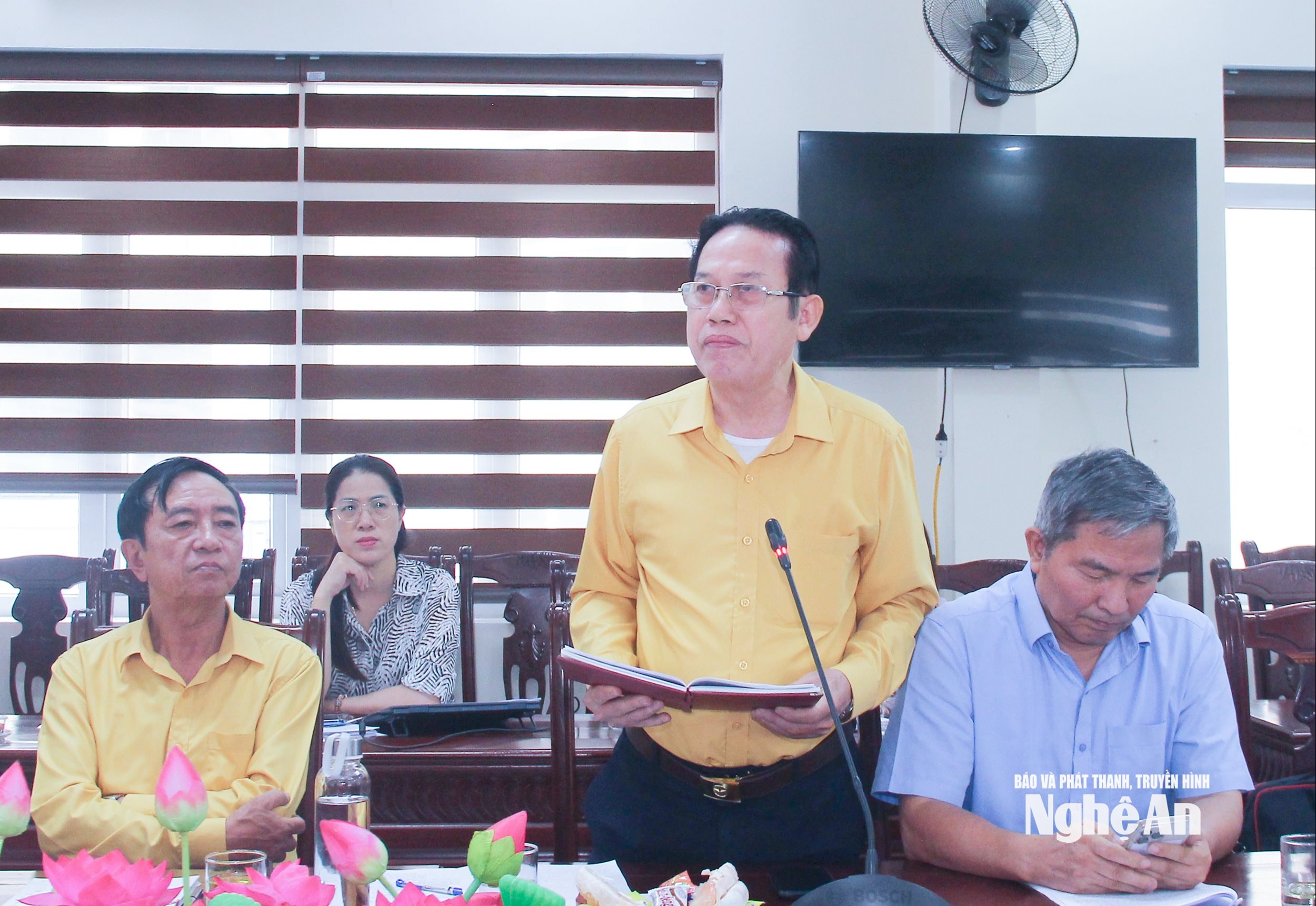 Đồng chí Nguyễn Trọng Thành - Phó Chủ tịch Hội Chiến sĩ cách mạng bị địch bắt tù đày tỉnh Nghệ An tham gia ý kiến tại hội nghị. Ảnh: Mai Hoa