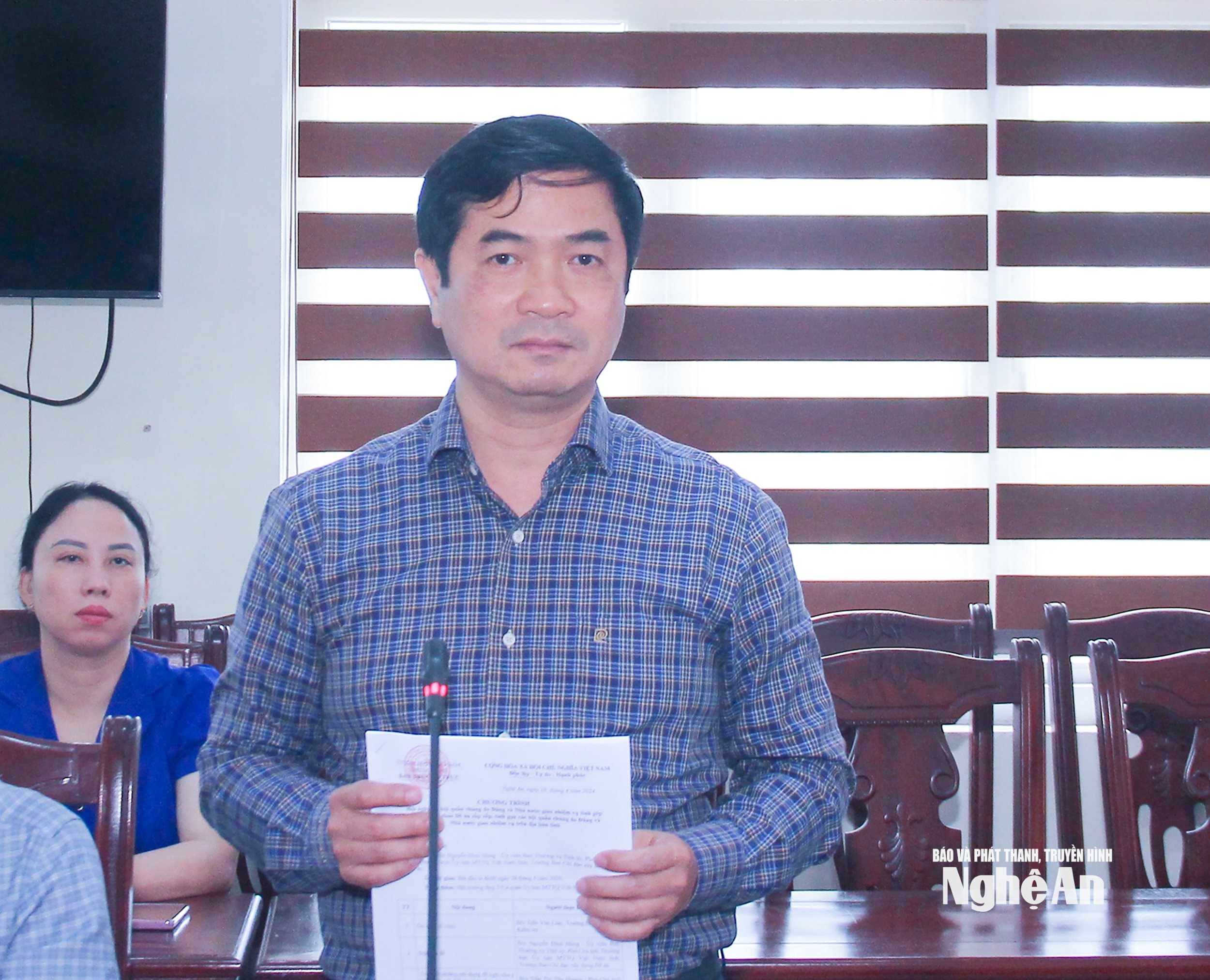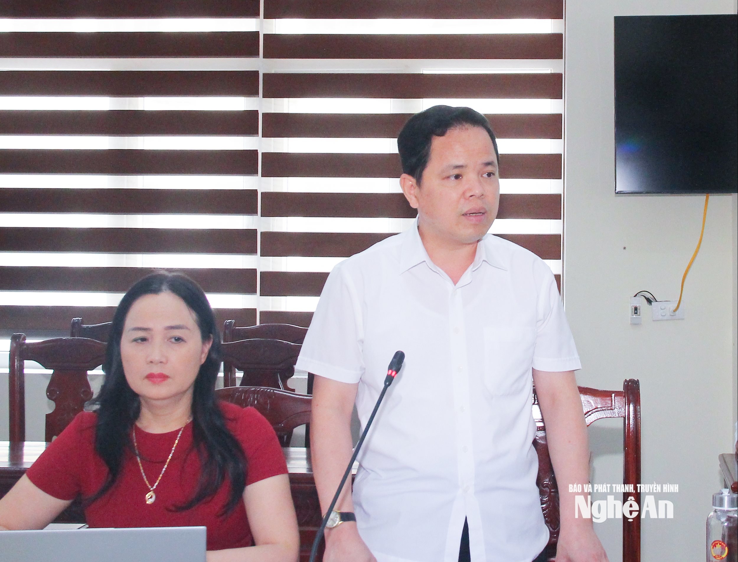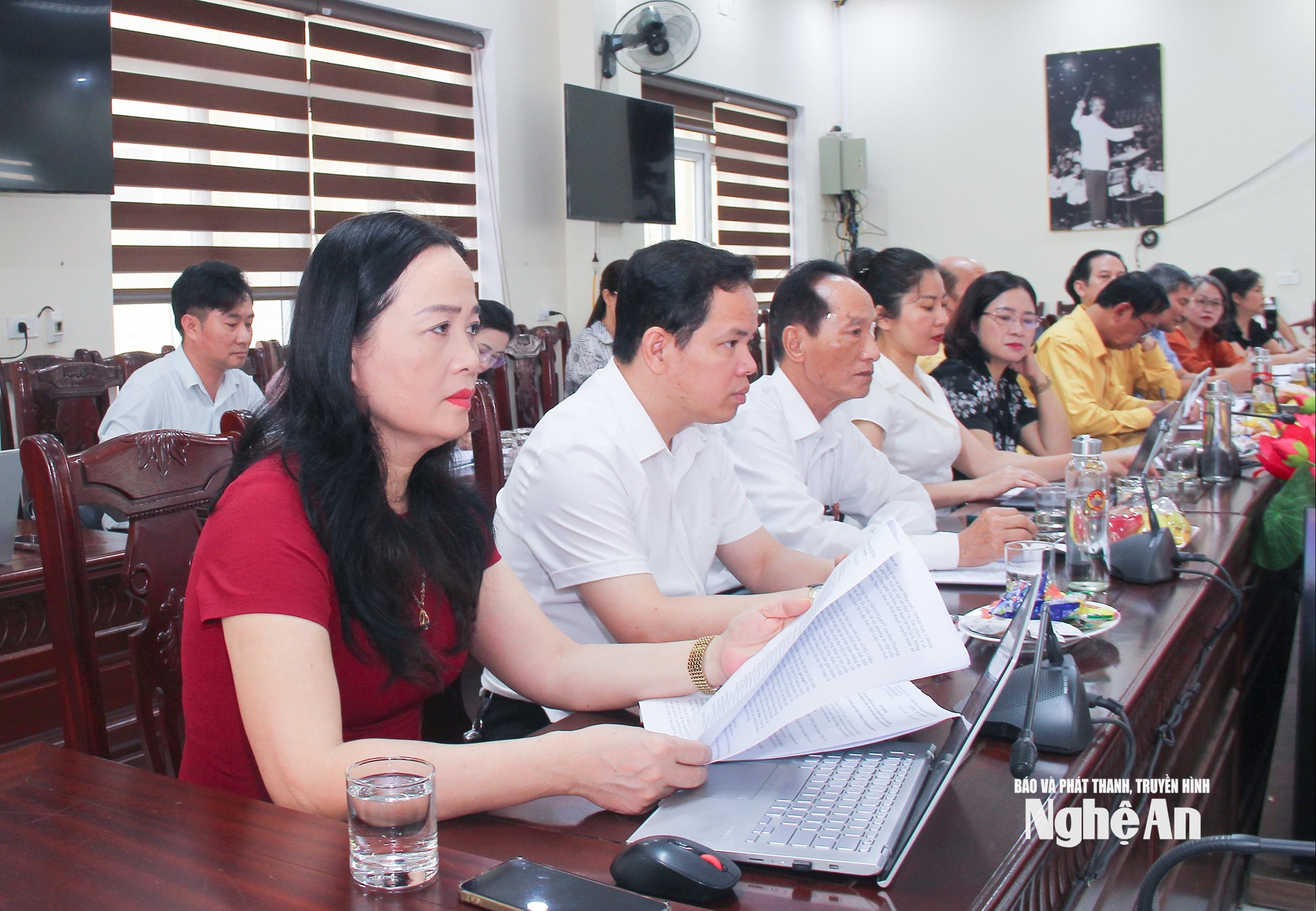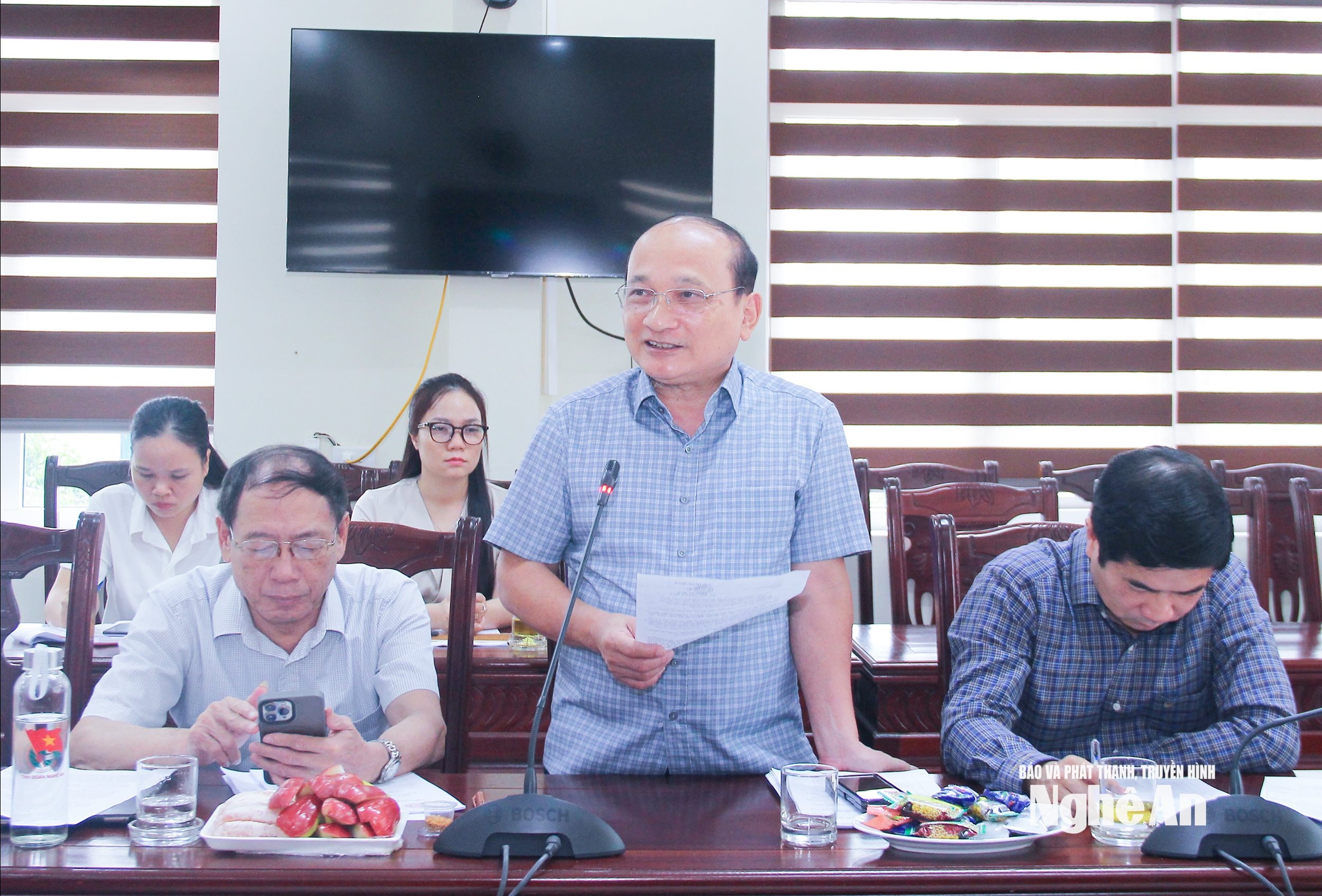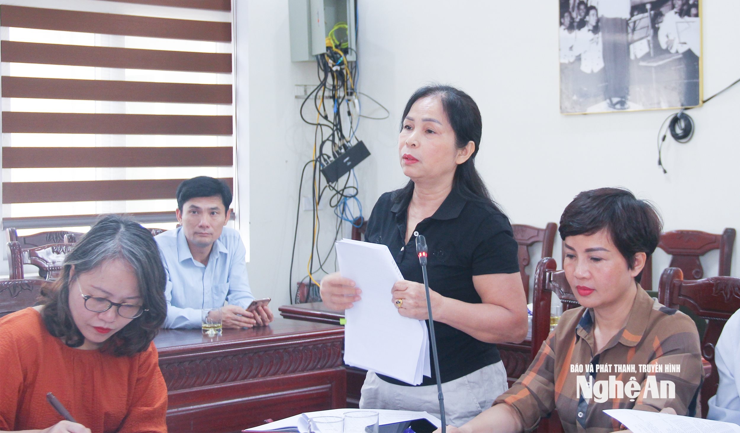 Đồng chí Hồ Thị Ngân - Phó Chủ tịch Thường trực Hội Nhà báo tỉnh Nghệ An nêu ý kiến quan tâm về bố trí nhân sự trong sắp xếp theo hướng ưu tiên người đương chức và trong độ tuổi lao động. Ảnh: Mai Hoa