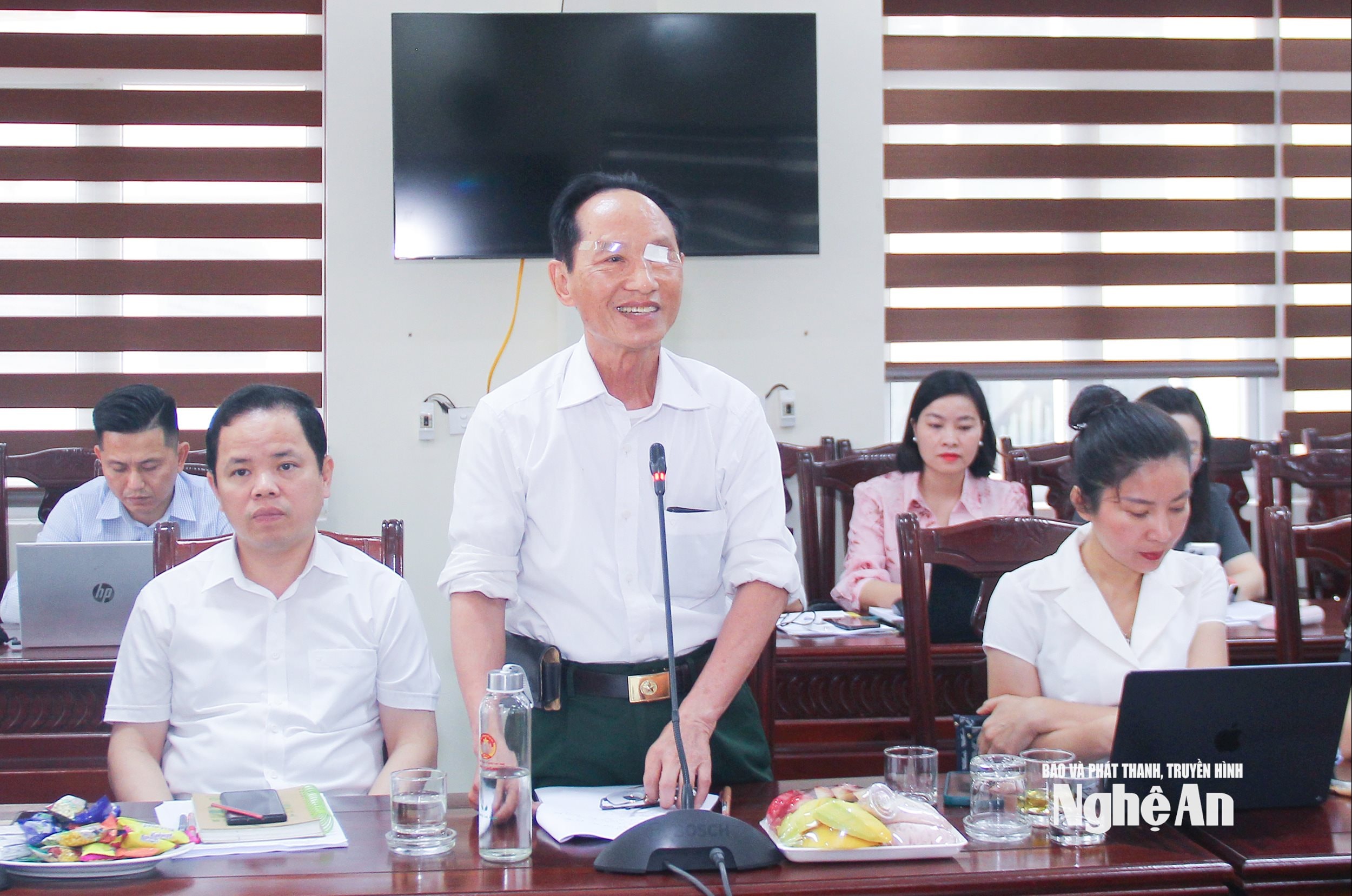 Đồng chí Hoàng Đăng Hòe - Chủ tịch Hội Nạn nhân chất độc da cam/dioxin tỉnh Nghệ An nêu ý kiến góp ý tại hội nghị. Ảnh: Mai Hoa