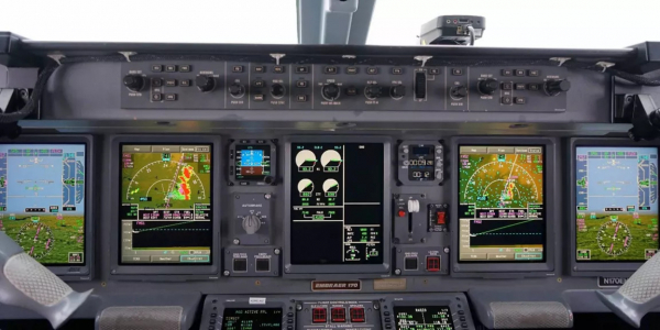 Buồng lái máy bay thương mại hiện đại với hệ thống định vị và dẫn đường vệ tinh - nền tảng vận hành an toàn của hàng không dân dụng.
