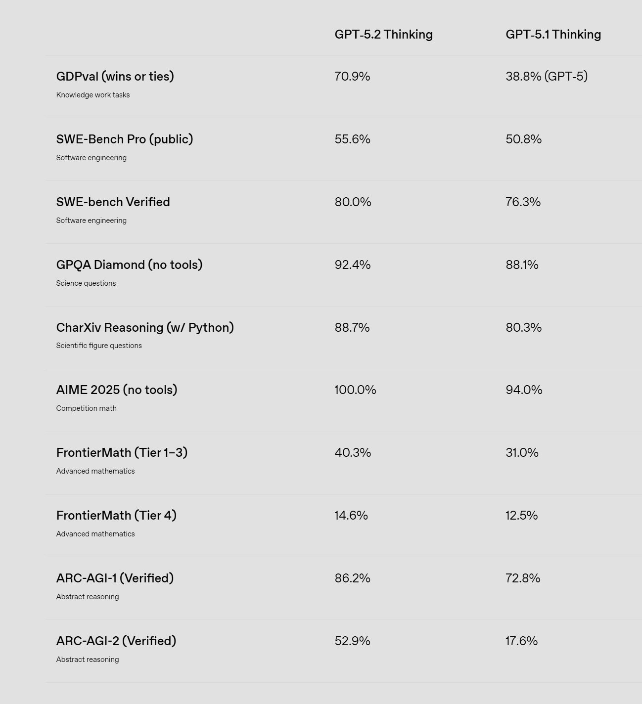 GPT-5.2 vượt trội GPT-5.1 trên các tiêu chuẩn đánh giá