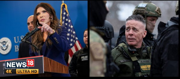 Bộ An ninh Nội địa của bà Kristi Noem (bên trái) xác nhận Bovino đã bị rút khỏi vai trò chỉ huy chiến dịch thực thi nhập cư tại Minneapolis. Ảnh: You Tube