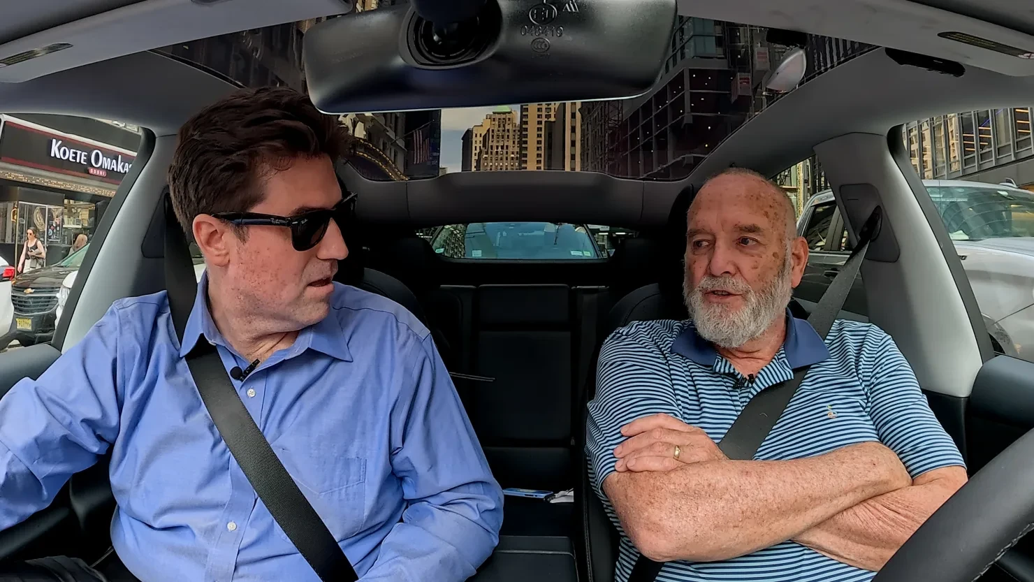Mike Nelson (phải) lái chiếc xe điện Tesla tại thành phố New York để trải nghiệm cảm giác sử dụng Grok - Ảnh: CNBC