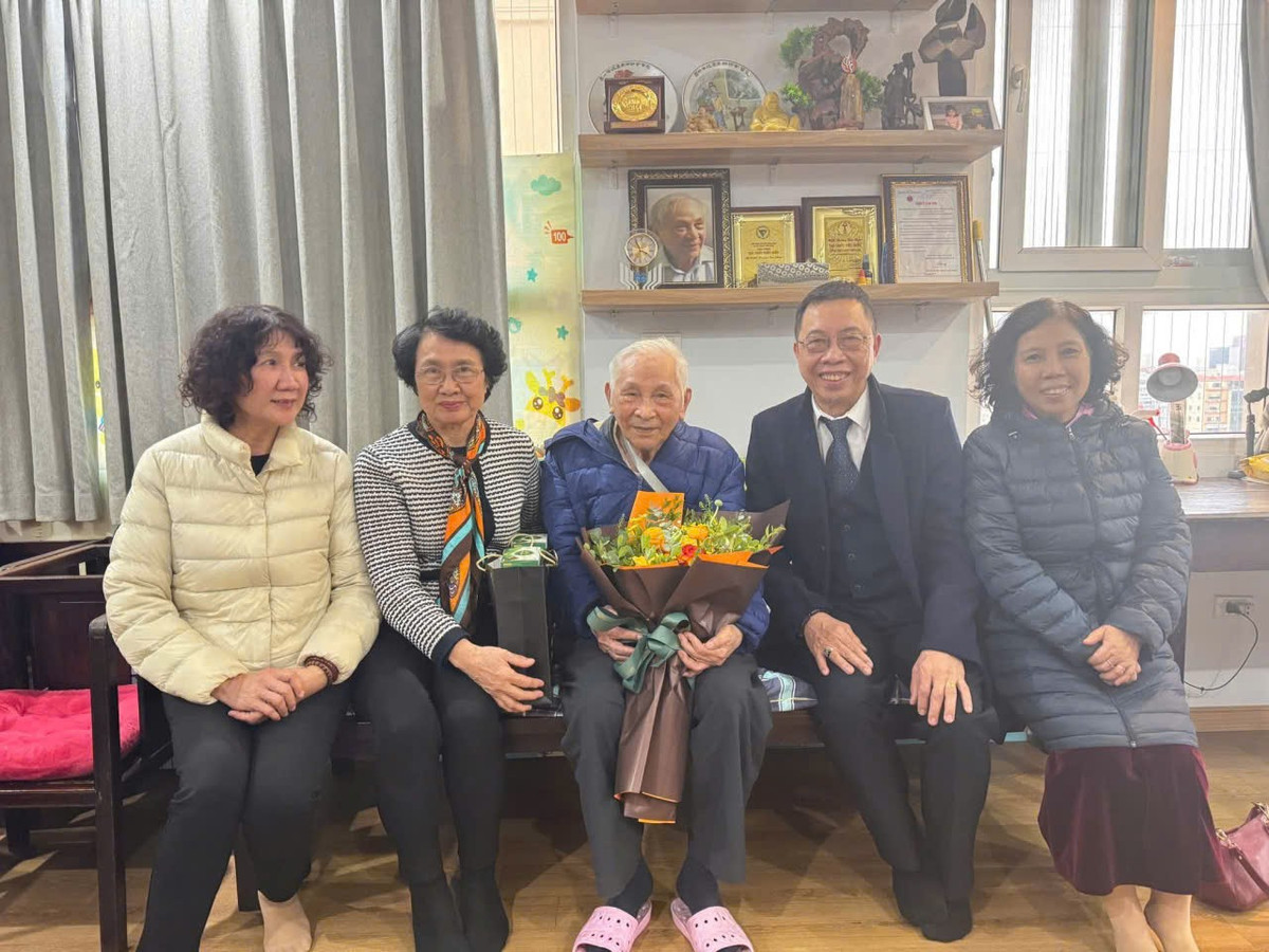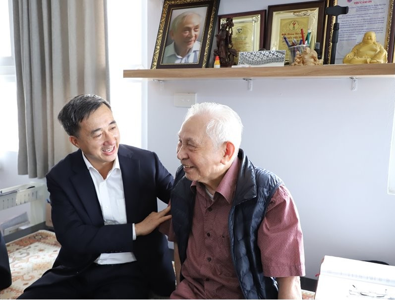 Thứ trưởng Trần Văn Thuấn ân cần thăm hỏi và tri ân GS.BS Hoàng Bảo Châu, 93 tuổi. Ảnh: SKĐS.