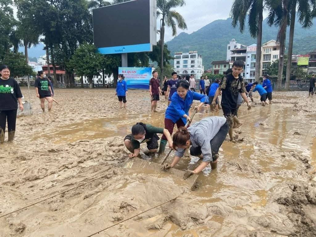 Sinh viên tình nguyện tham gia hỗ trợ dọn dẹp sau bão lũ. (Ảnh: Facebook)