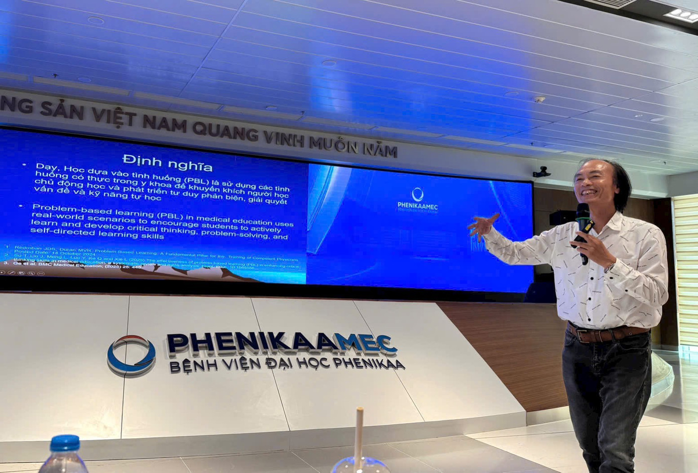 Bác sĩ Nguyễn Tiến Dũng trong buổi trao đổi tại Bệnh viện Đại học Phenikaa.