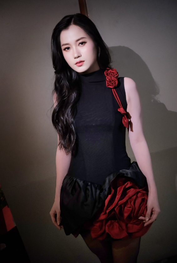 Phong cách thời trang thu hút của Lâm Vỹ Dạ còn được thể hiện qua những thiết kế ren trắng xuyên thấu đầy táo bạo kết hợp bèo nhún bồng bềnh, hay một chiếc đầm đen với chi tiết hoa hồng 3D lớn đính kèm, tạo điểm nhấn độc đáo và cá tính. Ảnh: FBNV