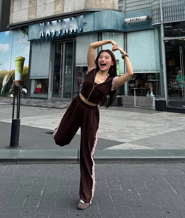 Phong cách của Phương Mỹ Chi phù hợp với giới trẻ nhờ tính trẻ trung, hợp tuổi và nhấn mạnh vào sự năng động, với phom dáng rộng rãi dễ vận động, lý tưởng cho lịch trình bận rộn như đi diễn hoặc dạo phố. Các item chủ yếu có giá vài trăm nghìn đồng, dễ tìm mua tại các cửa hàng địa phương, giúp outfit trở nên tiện lợi và gần gũi. Ảnh: IGNV