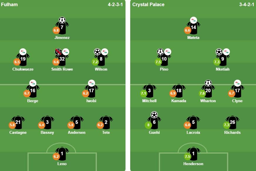 Bước sang hiệp hai, Fulham gia tăng sức ép và hoàn toàn chiếm lĩnh thế trận. Phút 55, mành lưới của Palace đã rung lên lần thứ hai sau cú đá bồi của Smith-Rowe. Tuy nhiên, sau khi tham khảo VAR, trọng tài đã từ chối bàn thắng vì xác định Chukwueze đã rơi vào thế việt vị ở tình huống trước đó.