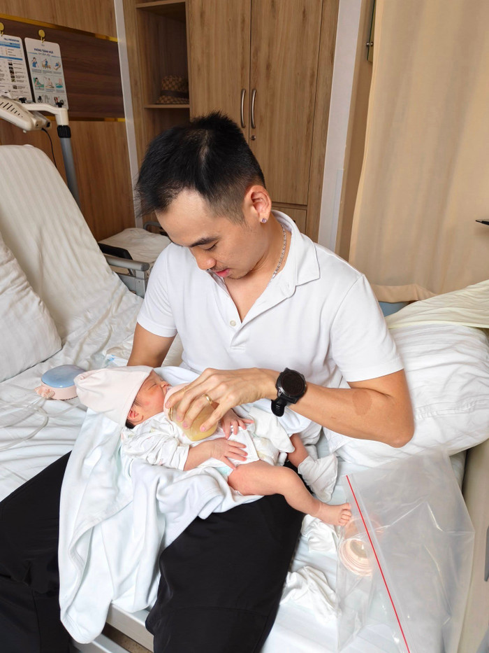 Chồng của nàng hậu hạnh phúc khi được "lên chức", đón thiên thần nhỏ chào đời. (Ảnh FBNV)