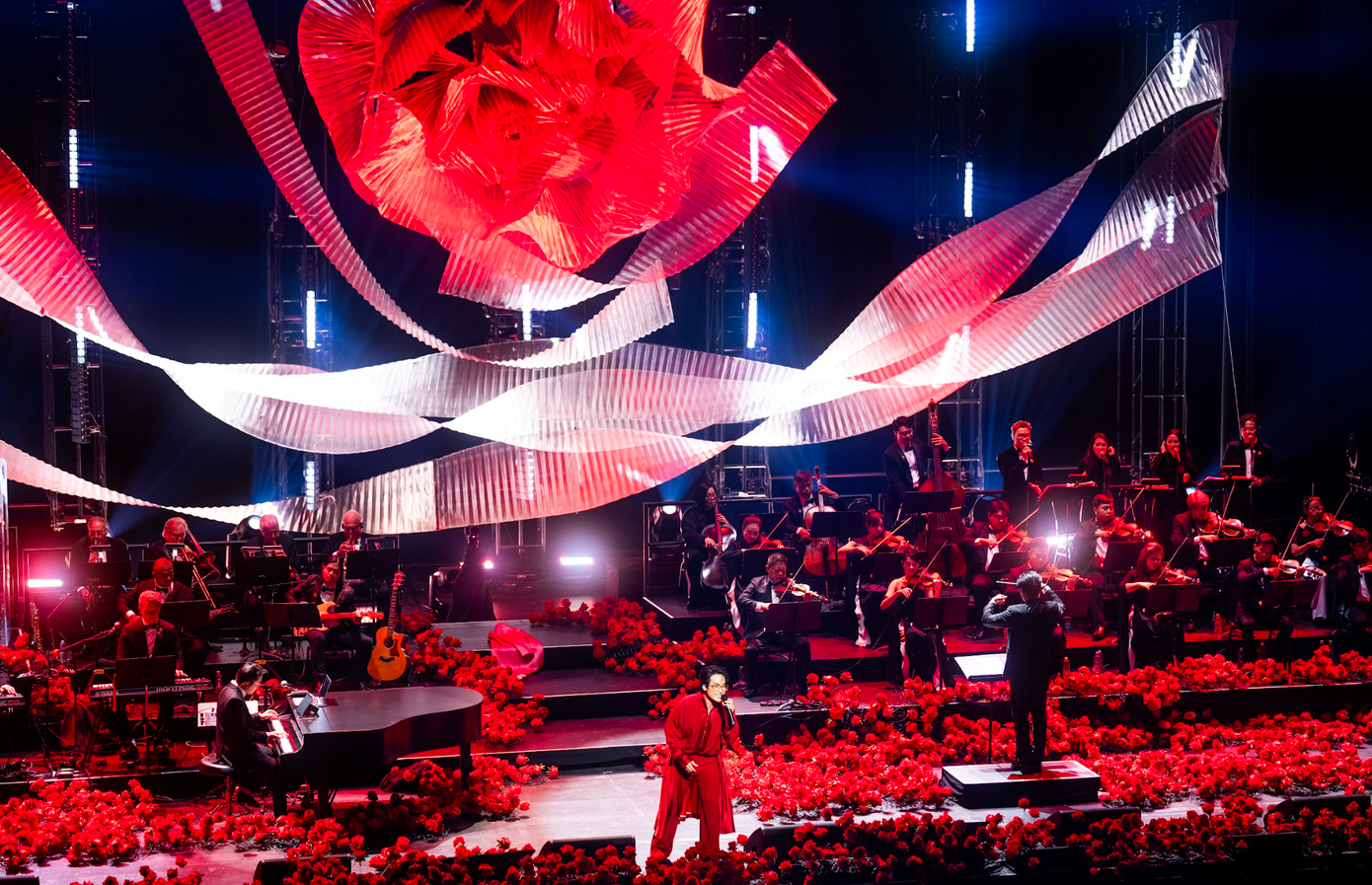 Từ Singapore, Sydney, Việt Nam đến Mỹ, mỗi đêm diễn Sketch A Rose lại mang một hình ảnh hoa hồng khác nhau. Tại Dolby Theatre, ê-kíp của Hà Anh Tuấn dựng bông hồng khổng lồ bằng lưới kim loại, kết hợp ánh sáng hiện đại.