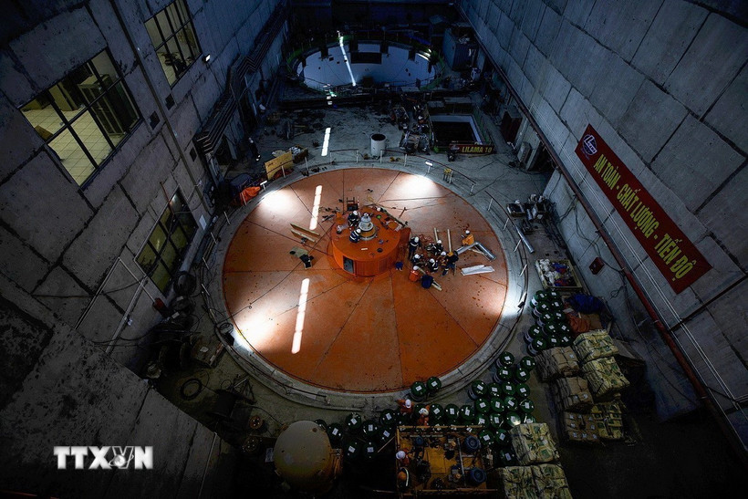 Các kỹ sư, công nhân thi công khu vực đặt 2 tổ máy. (Ảnh: Trọng Đạt/TTXVN)