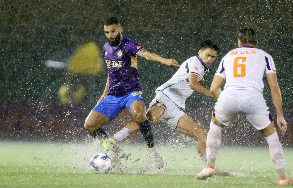 Một điểm nhấn khác của vòng đấu là chiến thắng ngoạn mục 3-2 của Hà Nội FC trước Becamex TP.HCM trên sân Gò Đậu. Dưới cơn mưa nặng hạt, đội bóng thủ đô bị dẫn trước từ khá sớm, nhưng tinh thần thi đấu quyết liệt và sự tỏa sáng của các cá nhân đã giúp họ lội ngược dòng thành công.