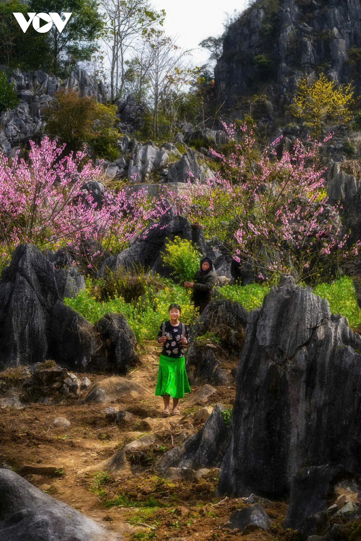 Nổi bật trên nền xanh xám của núi đá, hai đứa trẻ như đang dạo chơi trong khu vườn cổ tích của chính mình.