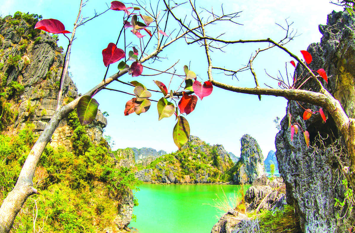 Cuối thu, đầu đông là thời điểm những cây sòi trên vịnh Hạ Long bắt đầu thay màu “áo đỏ”.