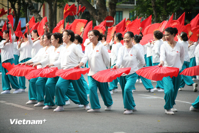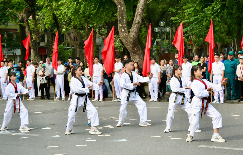 Bà Hoàng Thị Hương (người dân quận Hoàn Kiếm) bày tỏ: “Những hoạt động này giúp người dân thêm gắn kết, có động lực rèn luyện sức khỏe mỗi ngày. Trong buổi lễ hôm nay, tôi ấn tượng nhất với màn biểu diễn võ nhạc của các cháu thanh thiếu niên. Ai cũng tập đều, động tác dứt khoát.”
