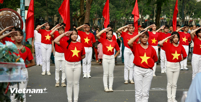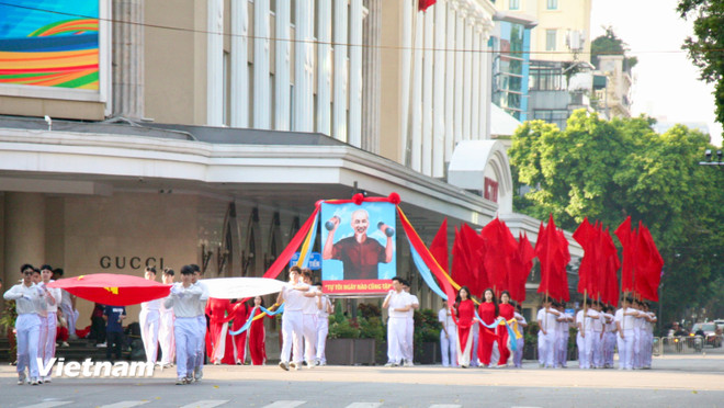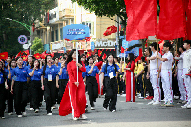 Khối diễu hành của Đoàn Thanh niên Cộng sản Hồ Chí Minh. (Trịnh Huyền/Vietnam+)