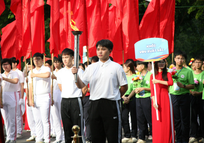 Vận động viên rước đuốc tại lễ khai mạc Đại hội. (Trịnh Huyền/Vietnam+)