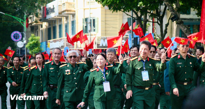 Khối diễu hành của Hội cựu chiến binh. (Trịnh Huyền/Vietnam+)