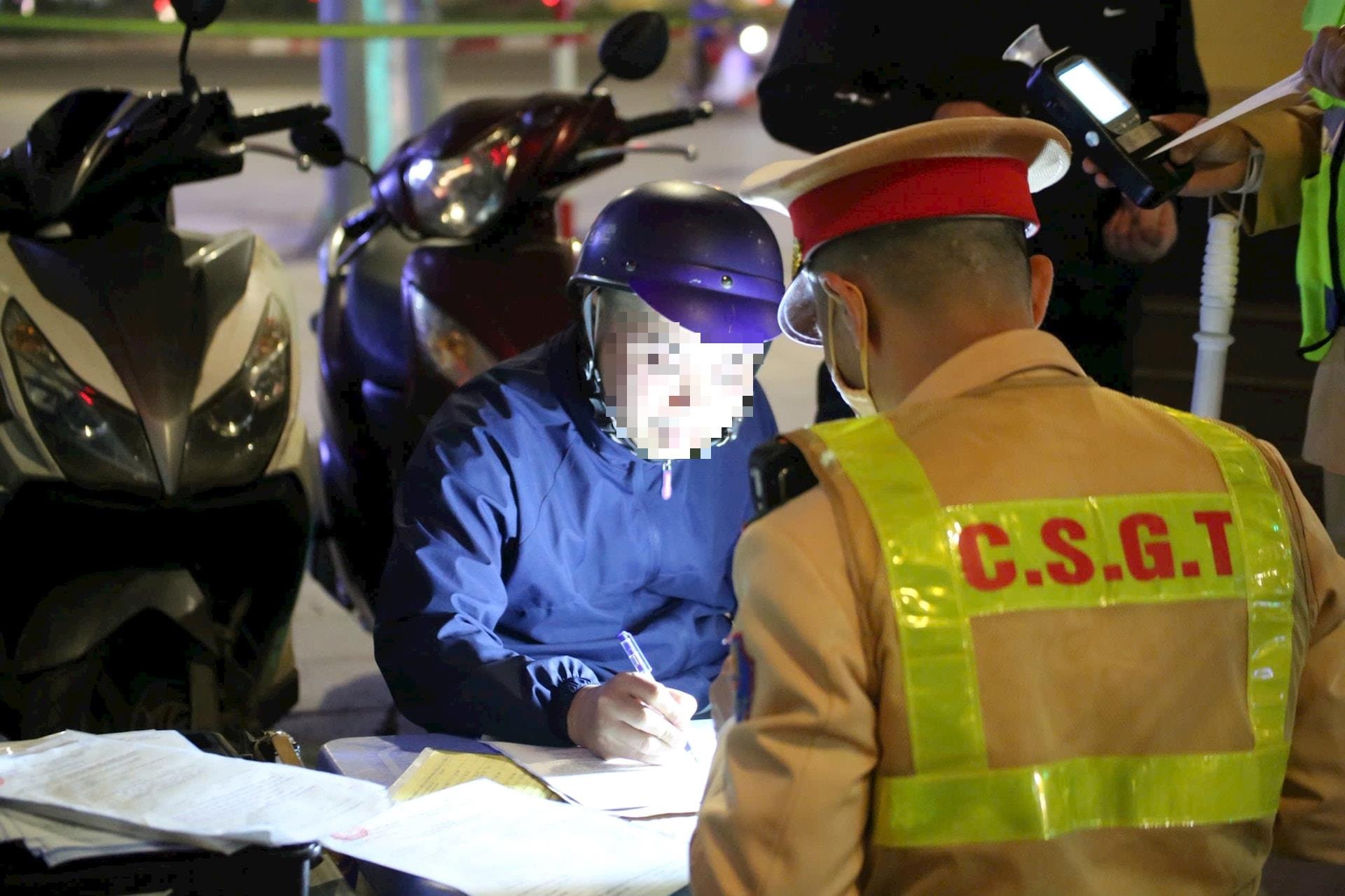 Một trường hợp vi phạm bị lực lượng chức năng lập biên bản xử lý, tối 14-2. Ảnh: NT