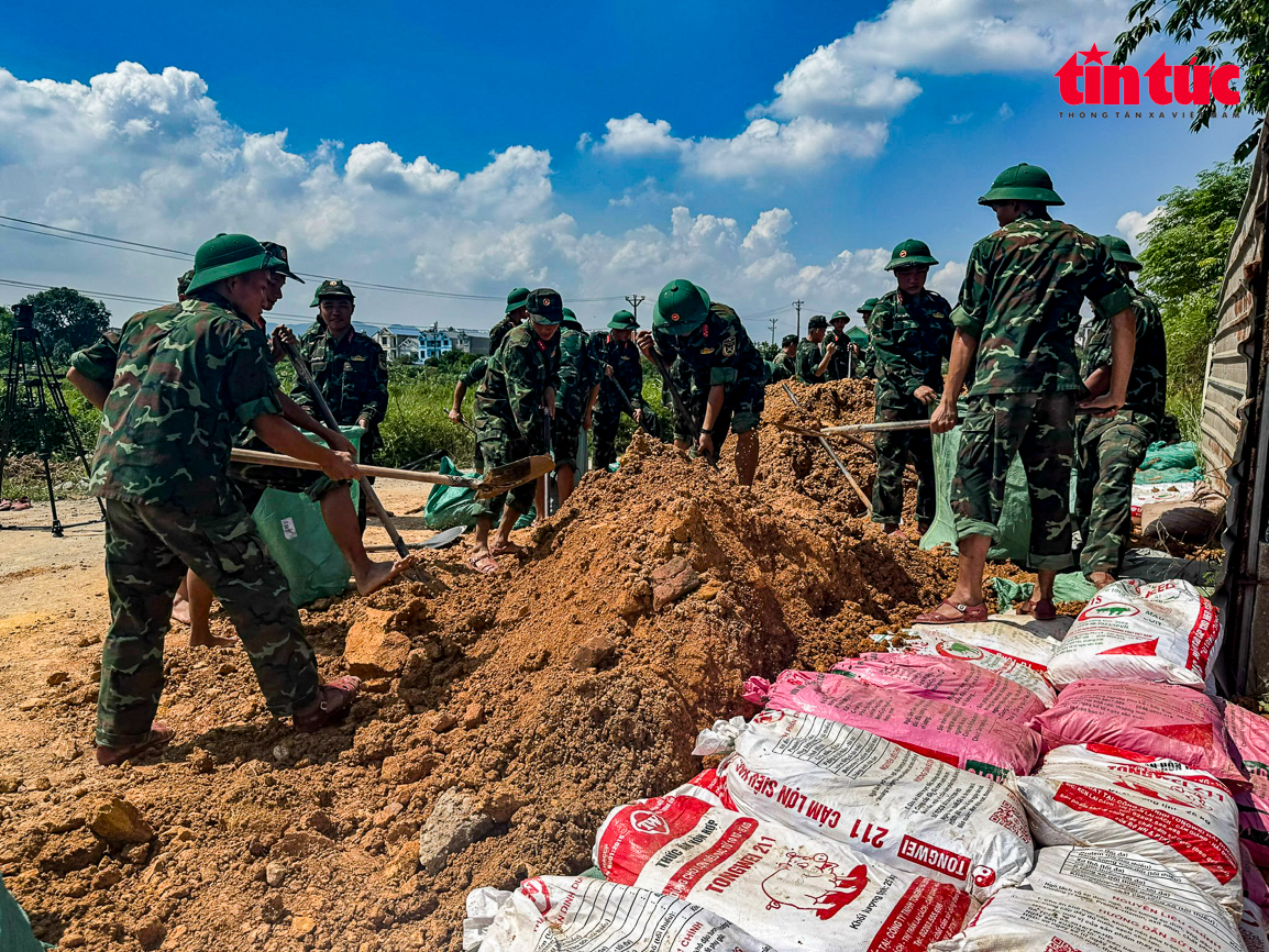 Theo ghi nhận của phóng viên, hàng nghìn cán bộ, chiến sĩ và tình nguyện viên vẫn túc trực đêm ngày trên các tuyến đê sông Cầu, sông Cà Lồ, chia ca canh gác, gia cố bao tải cát, theo dõi mực nước từng giờ.