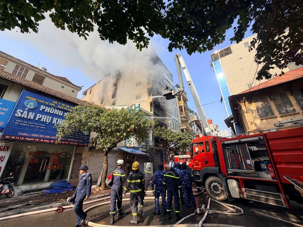 Căn nhà xảy ra cháy có quy mô 1 tầng hầm, 6 tầng nổi, 1 tầng lửng và 1 tầng tum. Đám cháy xuất phát tại khu vực tầng 1, sau đó lan lên các tầng phía trên; khói lan sang các nhà liền kề.