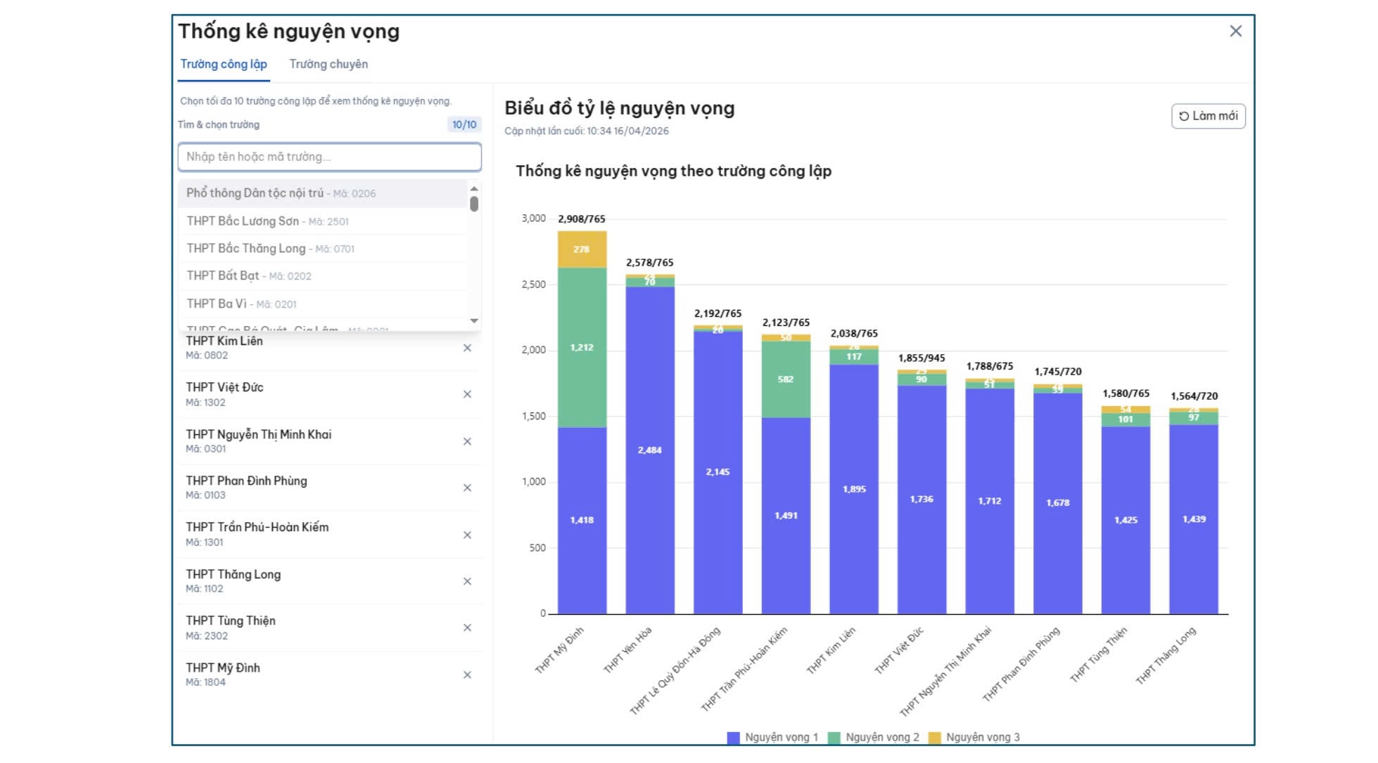 Thống kê tình hình đăng ký nguyện vọng vào các trường chuyên: