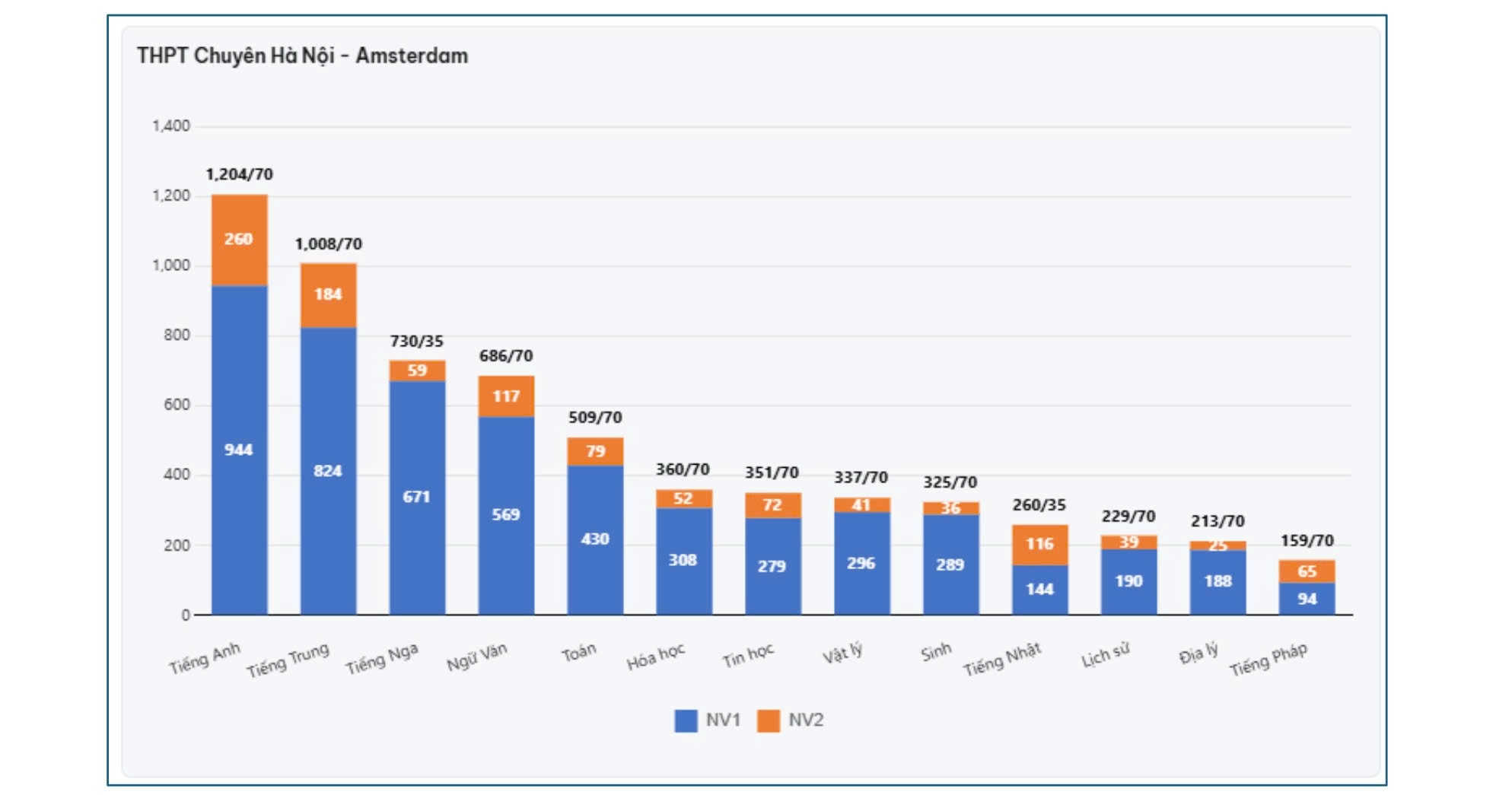 Sau đây là một số trường có số lượng đăng ký cao và số lượng nguyện vọng 1 cao: