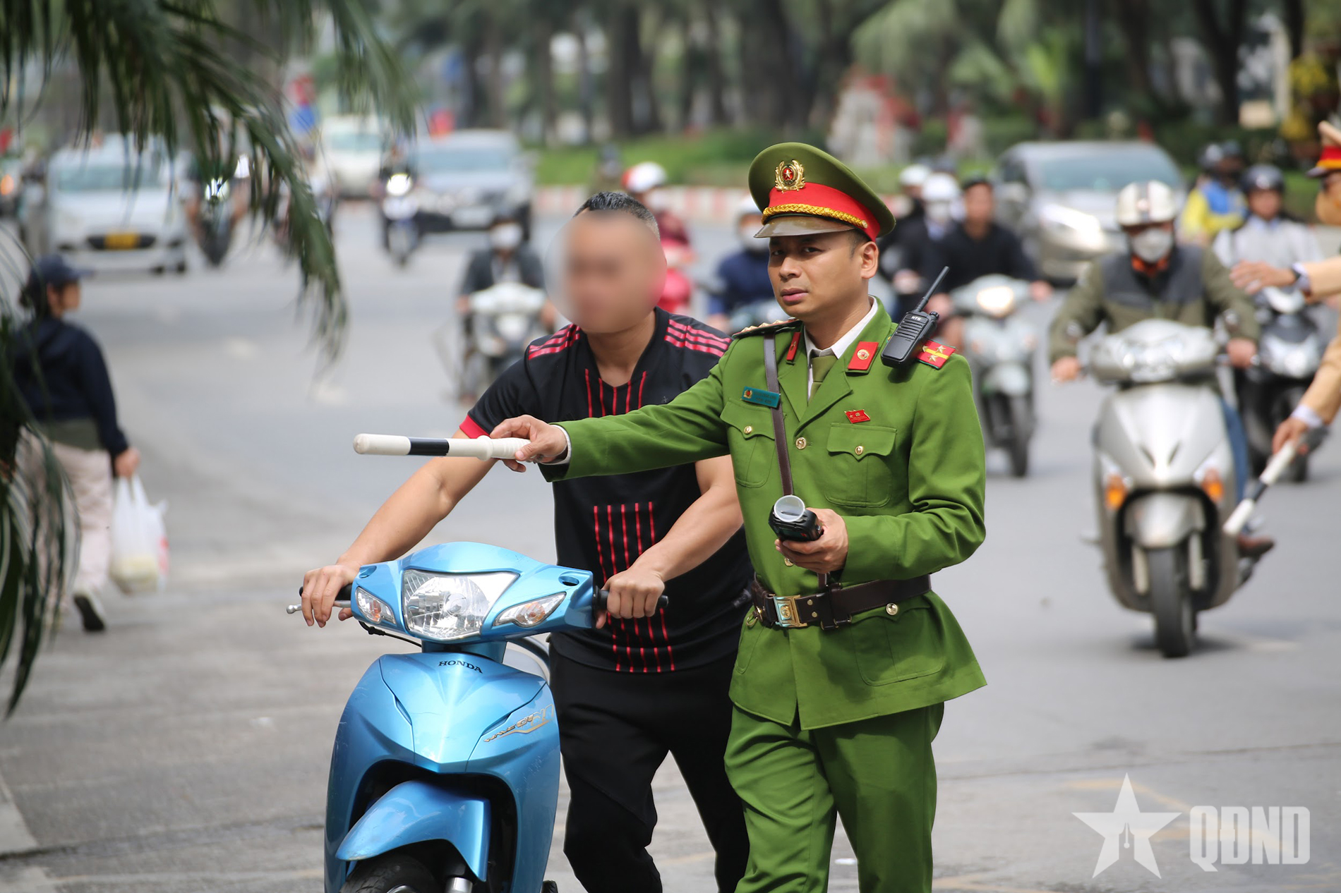 Tiếp đó, tổ công tác phát hiện anh Đ.V.L (sinh năm 1987, trú tại Hà Nội) điều khiển xe mô tô vi phạm nồng độ cồn ở mức 0,169 mg/L khí thở (mức 1).