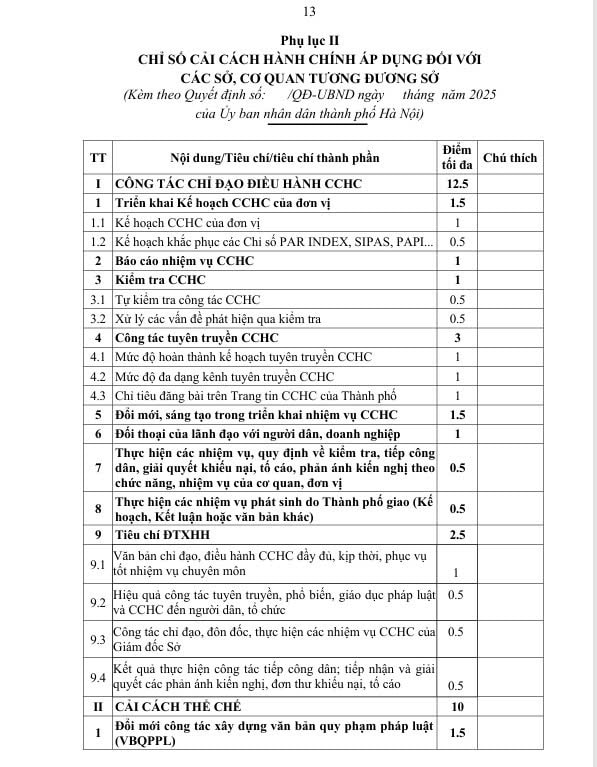 Theo đó, Chỉ số CCHC phải: Phù hợp, bám sát nội dung, yêu cầu tại Nghị quyết của Chính phủ về Chương trình tổng thể CCHC nhà nước của giai đoạn 2021-2030 và các chương trình, nhiệm vụ CCHC của thành phố theo từng giai đoạn; bảo đảm tính khả thi, phù hợp với đặc điểm, điều kiện thực tế khối lượng công việc của các sở, các xã và đánh giá thực chất kết quả triển khai CCHC hàng năm của các sở, các xã; tăng cường sự tham gia đánh giá của cá nhân, tổ chức đối với quá trình triển khai CCHC của các sở, các xã; hình thành hệ thống theo dõi, đánh giá trực tuyến, đồng bộ, thống nhất trong các cơ quan hành chính nhà nước từ thành phố đến cơ sở.