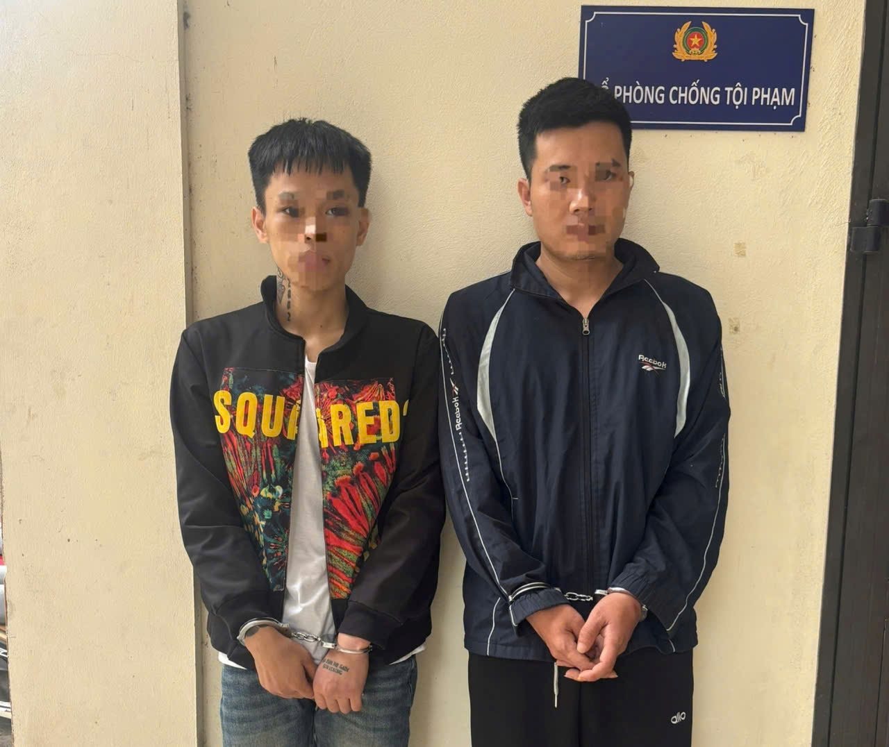 Hai đối tượng Phú và Phi tại Công an xã Bình Minh.