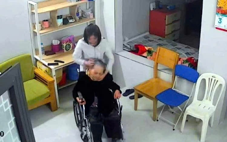 Hình ảnh nữ giúp việc bạo hành cụ bà được camera ghi lại
