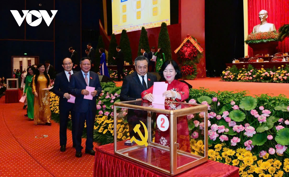 Các đại biểu bỏ phiếu bầu Ban Chấp hành Đảng bộ thành phố Hà Nội khóa XVIII - nhiệm kỳ 2025-2030