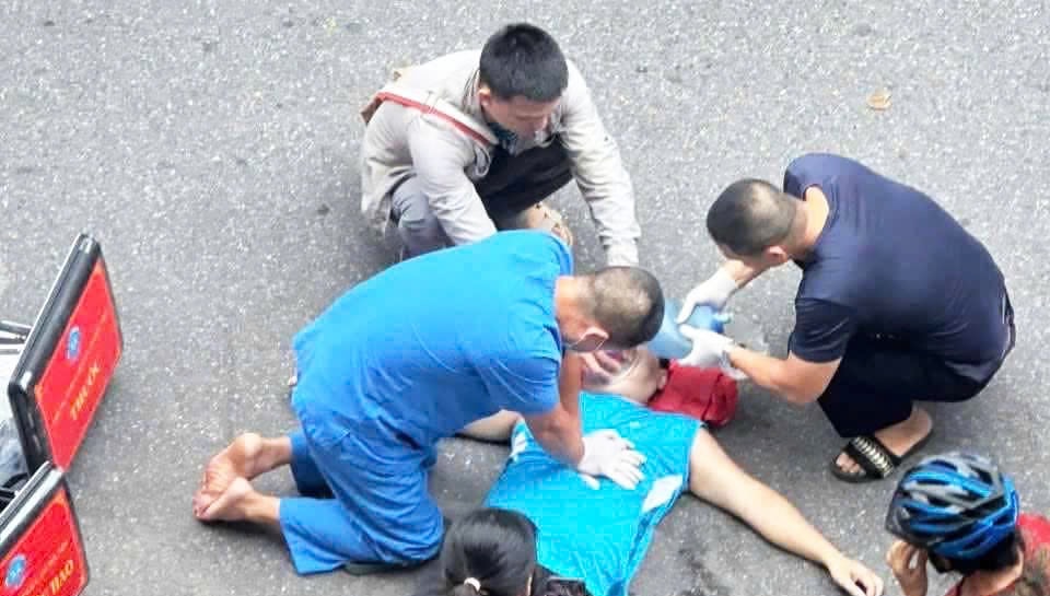 Bác sĩ của Trung tâm Cấp cứu 115 tiến hành cấp cứu nạn nhân ngừng tuần hoàn trên đường phố. Ảnh: 115 cung cấp
