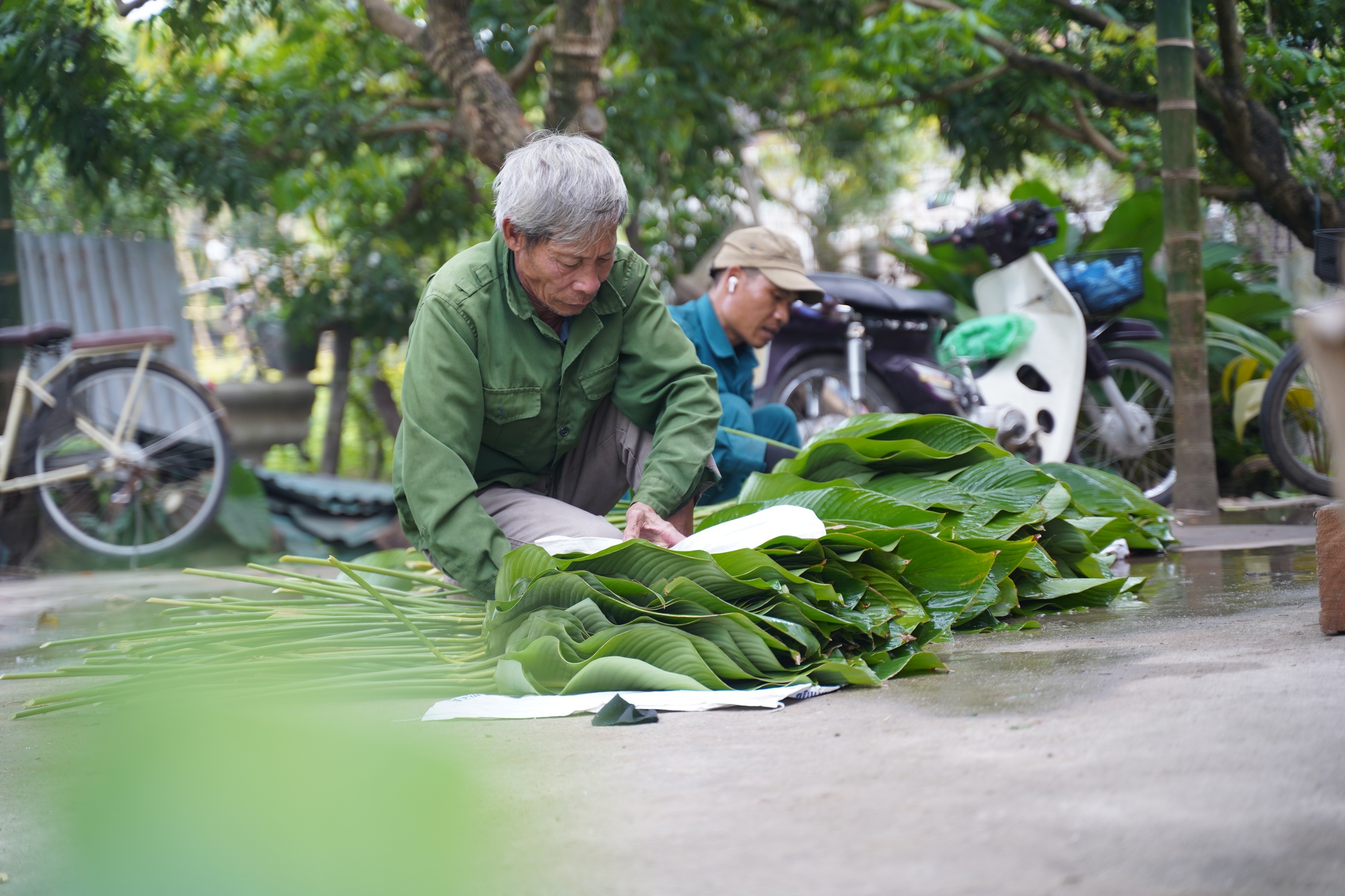 Làng nghề Tràng Cát có khoảng 30 ha trồng lá dong, chủ yếu xen kẽ trong vườn nhà và đất ở của các hộ dân. Từ sáng sớm, dân làng đã ra ruộng cắt lá dong, không khí lao động diễn ra nhộn nhịp khắp thôn xóm.