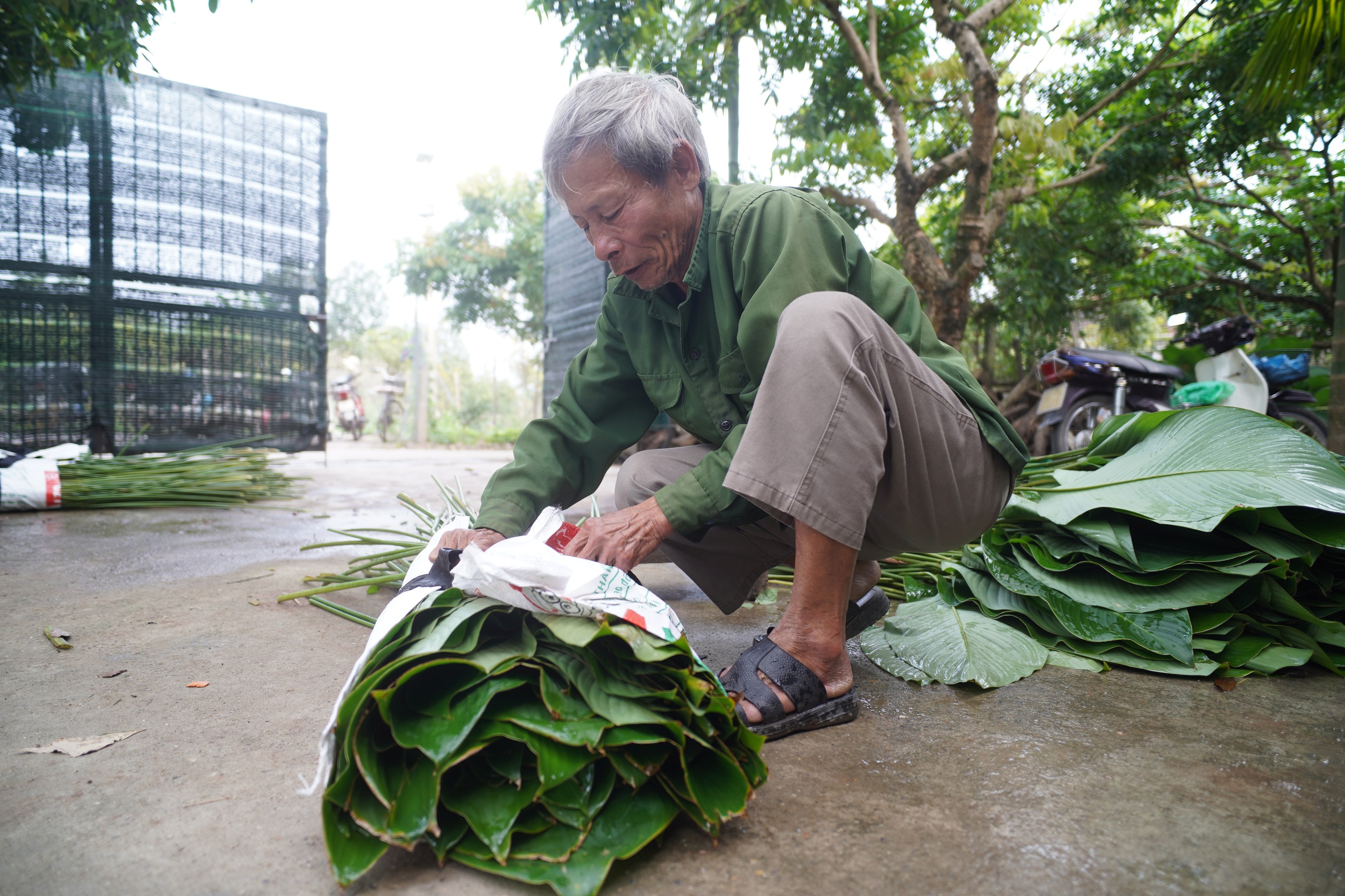 Gia đình bà Nguyễn Thị Vân (56 tuổi) có một sào lá dong, mỗi ngày phải thuê thêm 5 - 7 nhân công để kịp tiến độ giao hàng. "Lá dong Tràng Cát được chia thành nhiều loại, phù hợp với từng kiểu gói bánh khác nhau. Giá bán mỗi bó 100 lá dao động từ 60.000 đến 250.000 đồng, tùy theo kích cỡ và chất lượng lá", bà Vân cho hay.