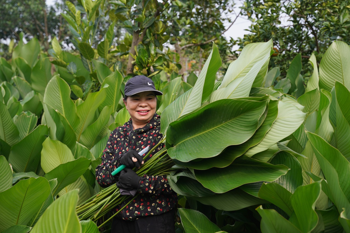 Bà Phạm Thị Xuân, hộ trồng 2 mẫu lá dong, cho biết những ngày cận Tết, gia đình làm việc liên tục, hầu như không có thời gian nghỉ. “Đây là thời điểm ‘vàng’ trong năm nên phải thu hoạch liên tục để kịp giao cho thương lái. Trừ chi phí, mỗi sào lá dong mang lại cho gia đình lãi khoảng 15–20 triệu đồng”, bà Xuân chia sẻ.