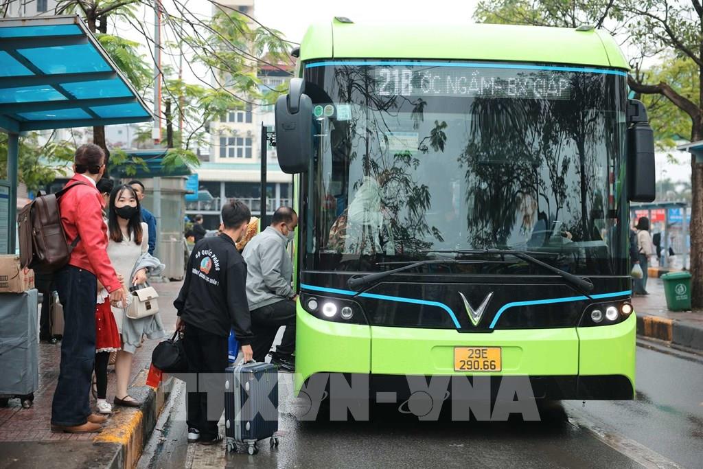 Người dân di chuyển tiếp bằng xe buýt từ Bến xe Giáp Bát. Ảnh: Hoàng Hiếu - TTXVN