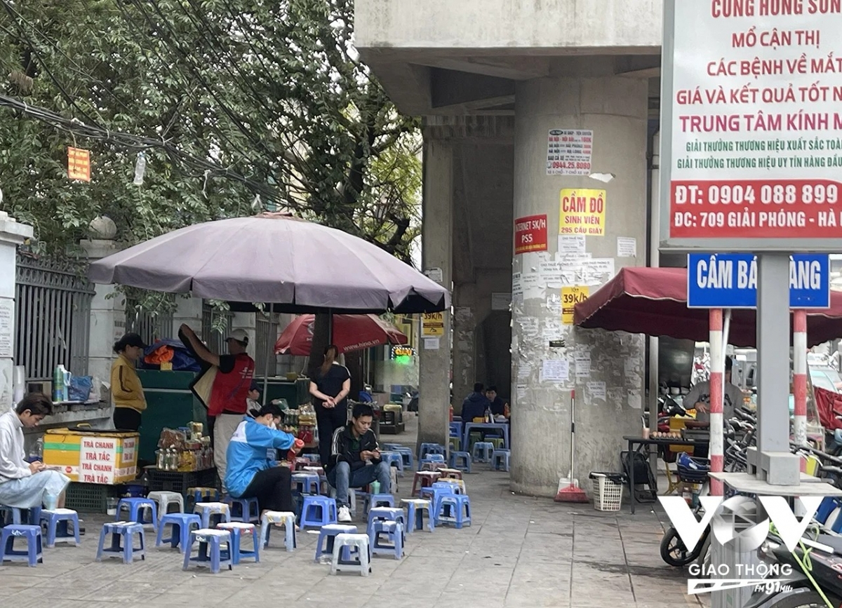 Không chỉ vỉa hè phía cổng trường bị chiếm dụng để bán hàng, mà ngay bên kia đường, khu vực gầm nhà ga Cầu Giấy của tuyến metro Nhổn - ga Hà Nội cũng đang trở thành một “điểm nóng” về vi phạm trật tự đô thị bởi các bãi trông giữ xe trái phép. Ô tô đỗ chắn ngang vỉa hè, xe máy dựng san sát lòng đường, có thời điểm, cả xe khách cỡ lớn cũng dừng, đỗ dưới lòng đường, lấn cả làn ưu tiên dành cho xe buýt. Người đi bộ, người già, trẻ em, sinh viên… buộc phải bước xuống lòng đường, đối mặt trực tiếp với dòng phương tiện đông đúc, tiềm ẩn nguy cơ tai nạn giao thông…