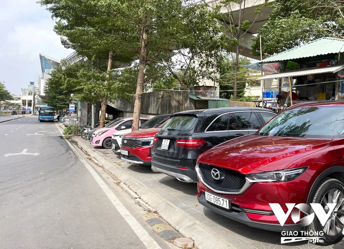 Theo ghi nhận của PV VOV Giao thông Quốc gia, dưới gầm nhà ga Cầu Giấy, một hạng mục quan trọng của tuyến đường sắt đô thị Nhổn - ga Hà Nội đang tồn tại các bãi trông giữ xe tự phát hoạt động cả ngày lẫn đêm. Hàng trăm ô tô, xe máy được sắp xếp san sát, chiếm trọn vỉa hè và một phần lòng đường.