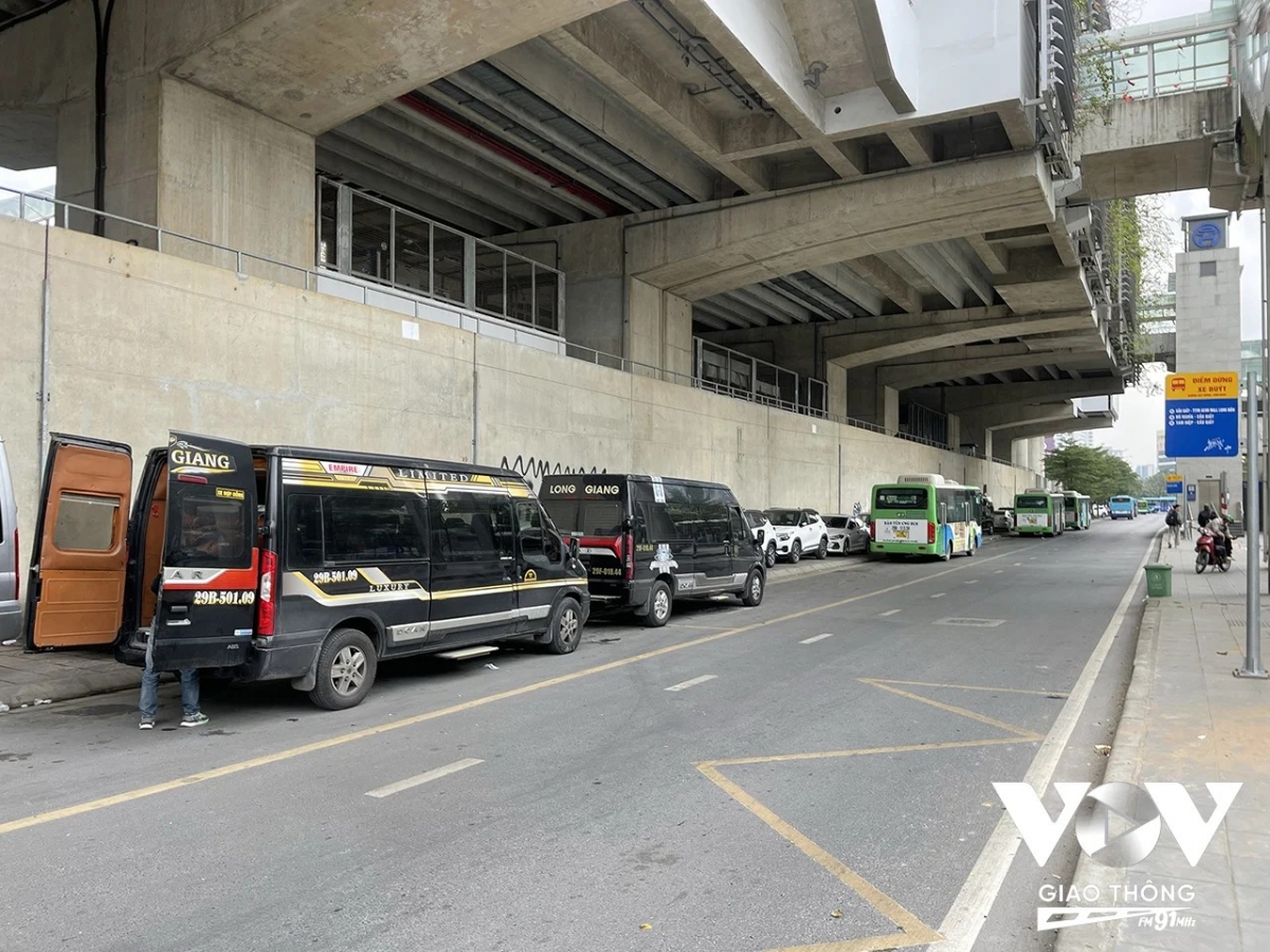 Xe to, xe nhỏ thi nhau dừng đỗ tại khu vực gầm ga Cầu Giấy của tuyến đường sắt Metro Nhổn - ga Hà Nội