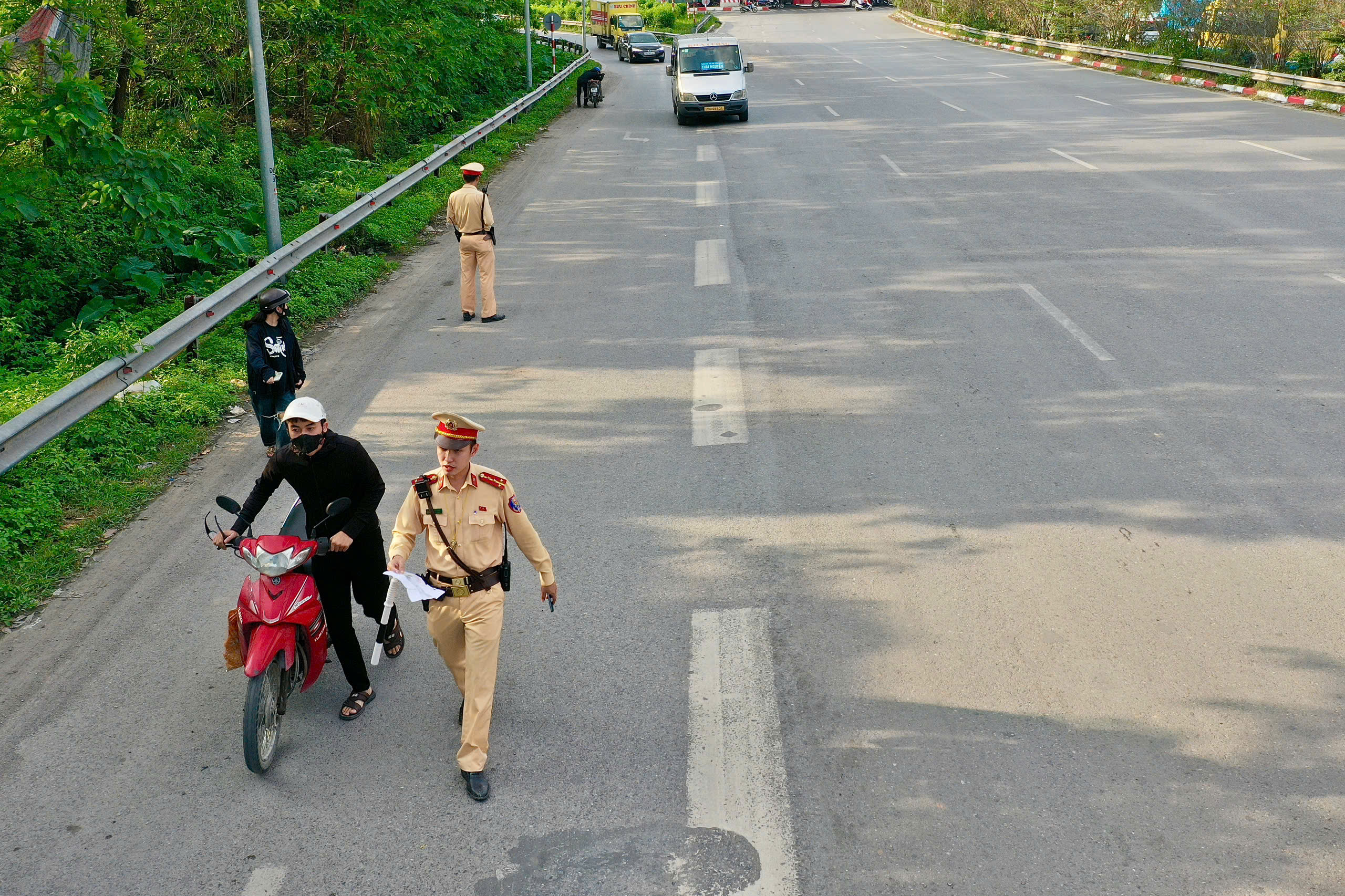 Tại khu vực Đại lộ Thăng Long, lực lượng thuộc Đội CSGT đường bộ số 11 tăng cường chấn chỉnh, xử lý tình trạng xe máy cố tình đi vào đường cao tốc.