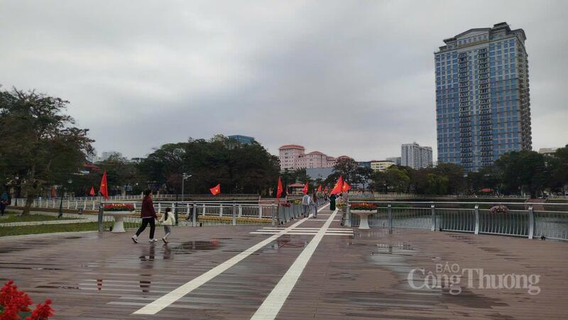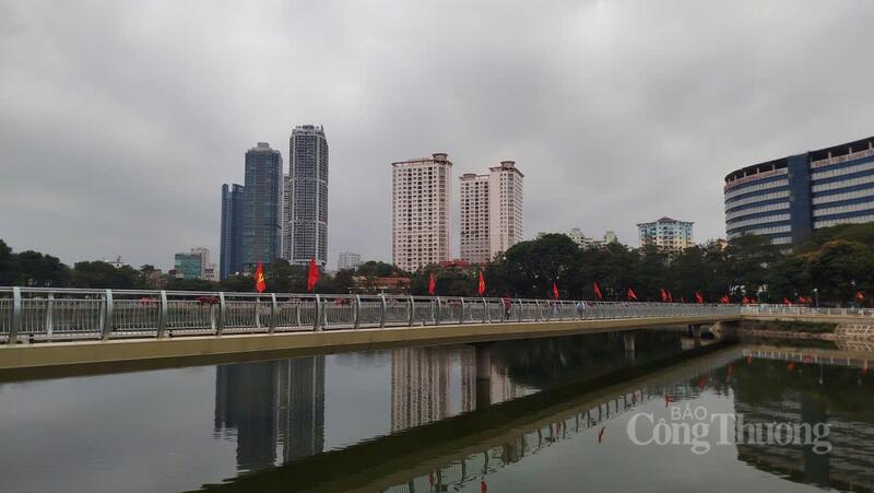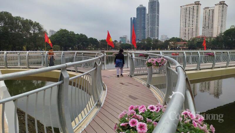 Cây cầu bắc ngang hồ là điểm nhấn trong thời gian cải tải, nâng cấp Công viên Nghĩa Đô.