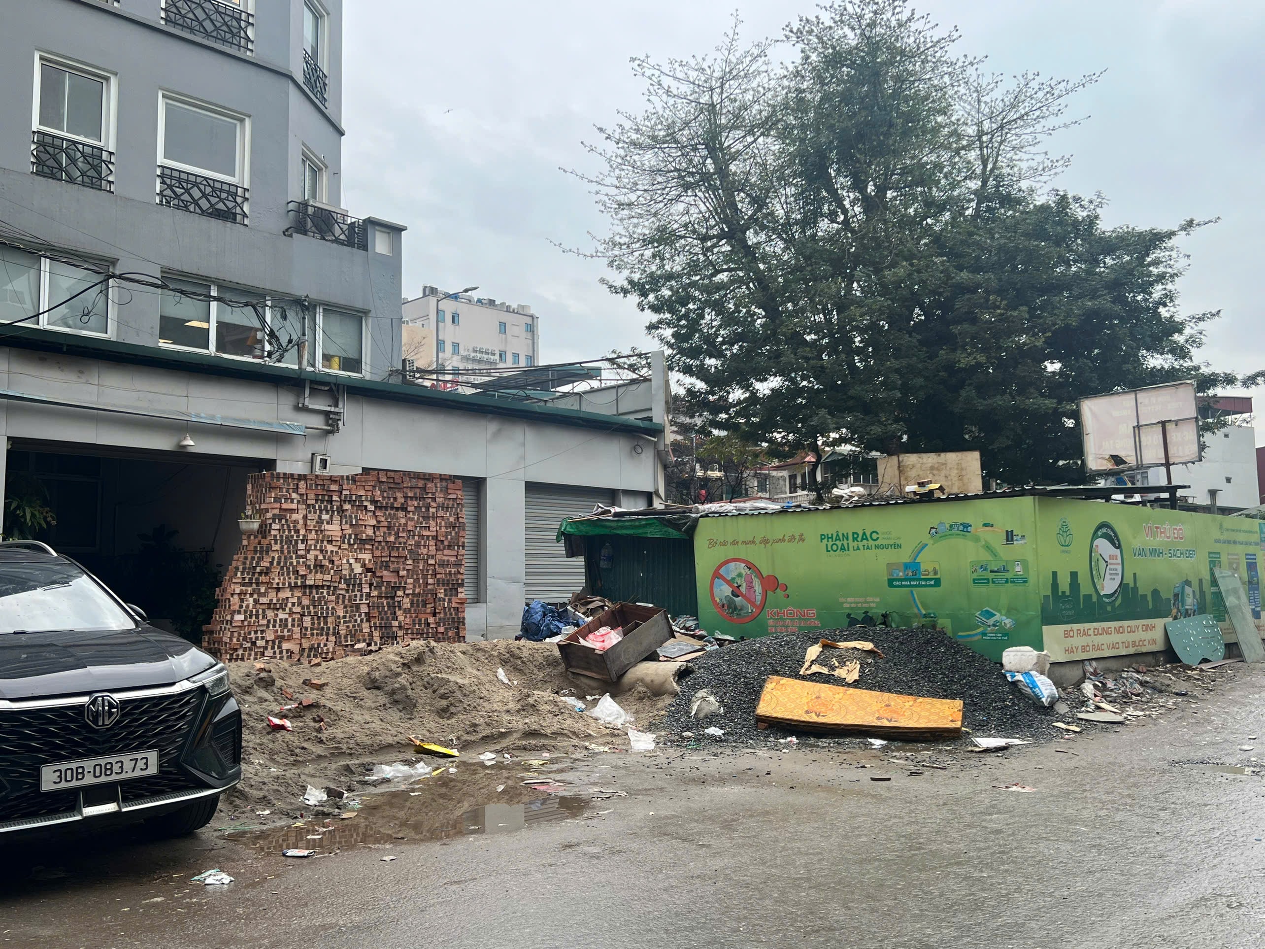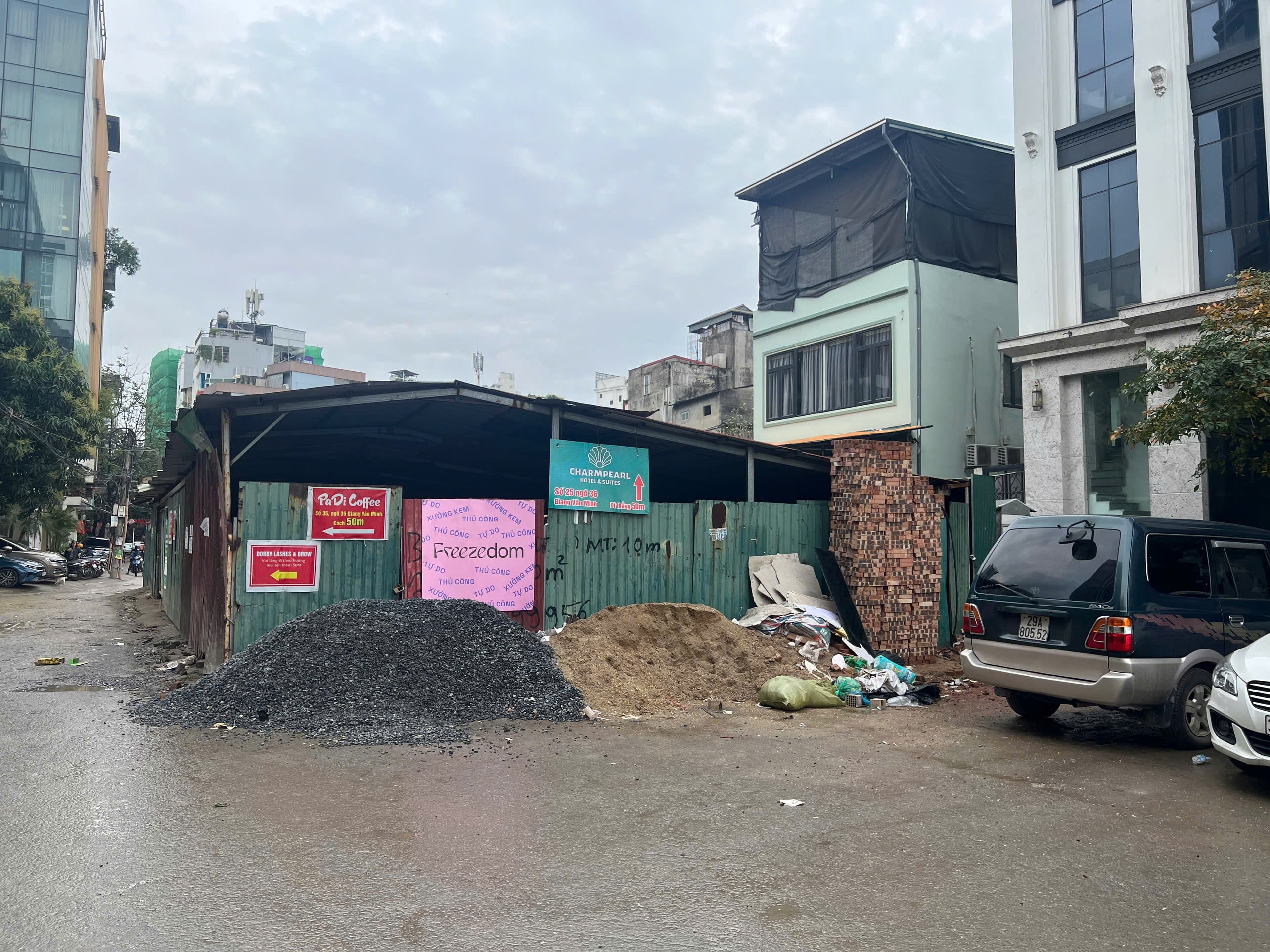 Vật liệu xây dựng vẫn tập kết tại nhiều điểm trong khu vực trong ngõ 36 Giang Văn Minh