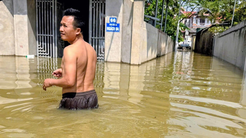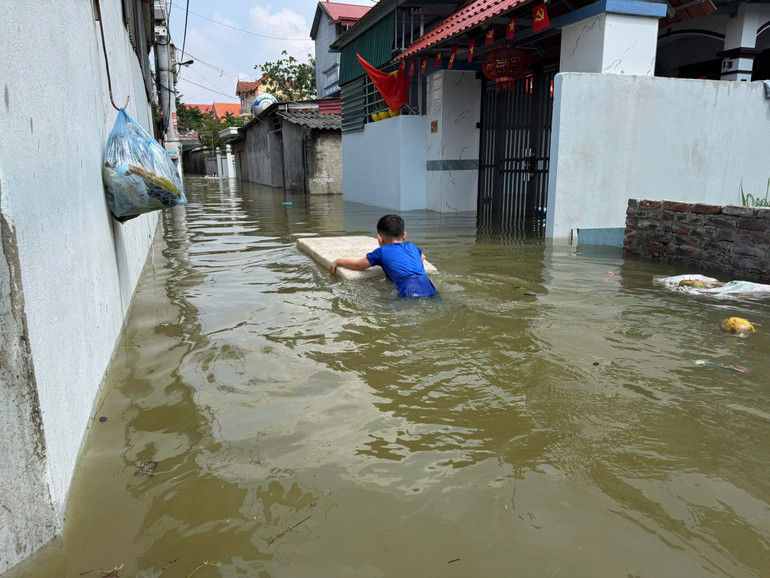 Nhiều gia đình thậm chí phải mượn thuyền để đi vào khu vực trong đê, nơi ít ngập hơn để lấy thực phẩm, tắm rửa nhờ nhà người thân. "Cuộc sống sinh hoạt bị đảo lộn cả, tôi mong nước lũ sớm rút để chúng tôi sớm trở lại cuộc sống bình thường", ông Chinh chia sẻ.