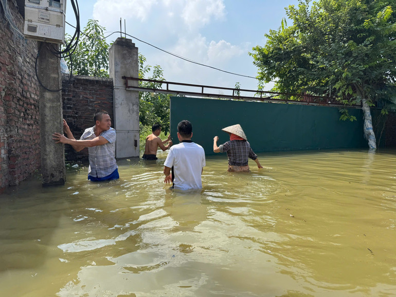 Do lượng nước đổ về từ thượng nguồn lớn, gây ngập úng trên diện rộng, một số khu vực tại xã Trung Giã và Đa Phúc bị cô lập, khó tiếp cận. Hàng trăm người dân không kể ngày đêm liên tục tham gia cùng các lực lượng chức năng đắp bờ bao để hộ đê, bảo đảm an toàn đê điều.